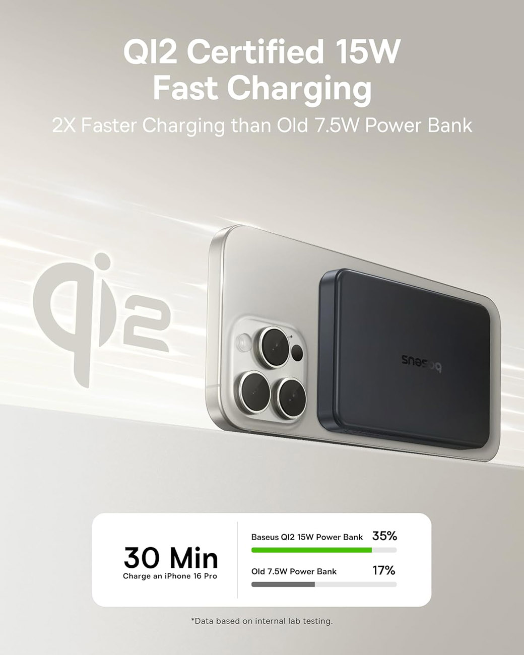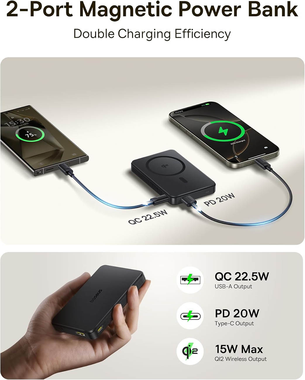 Supports 20W fast charging via Type-C port and 22.5W via USB-A port.