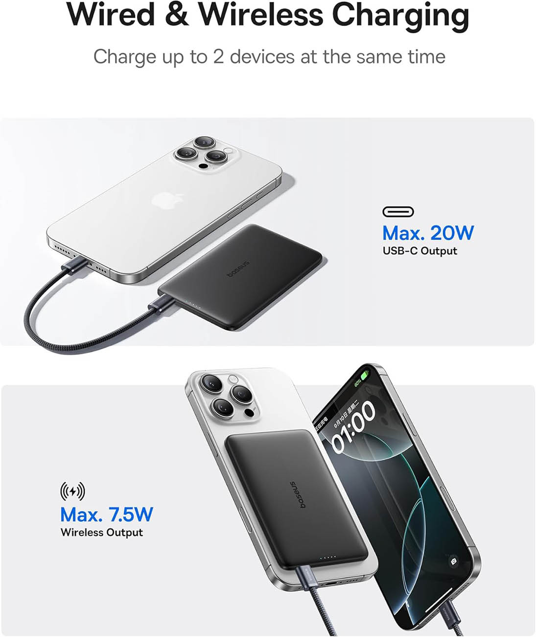 Supports both wired and wireless charging.