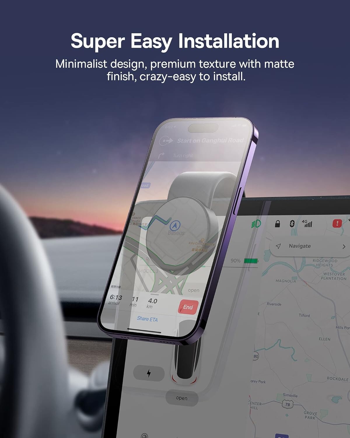 Baseus car phone stand with a sleek and innovative design.