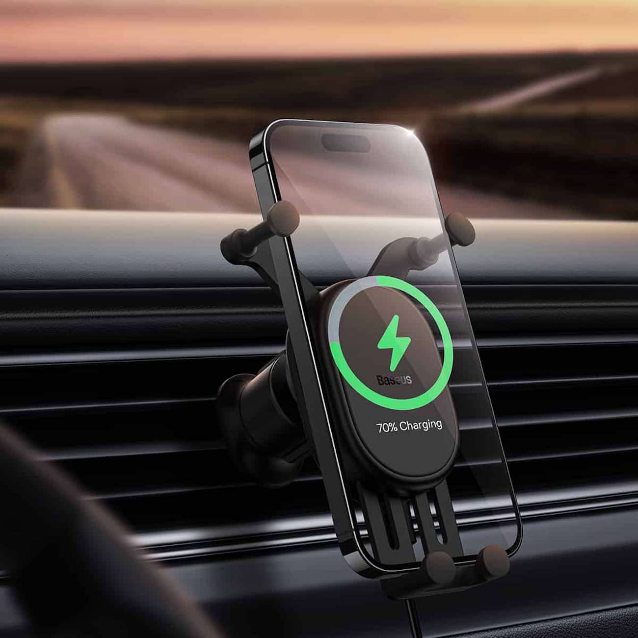 Baseus Wireless Car Phone Stand / Mounts on Dashboard & Air Vent / 15 Watts