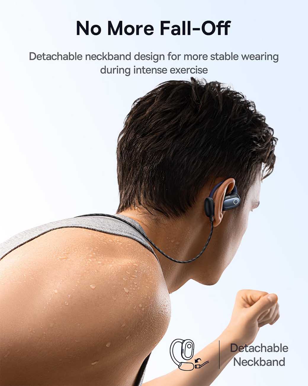 Can be used with a detachable neckband for extra stability during workouts.