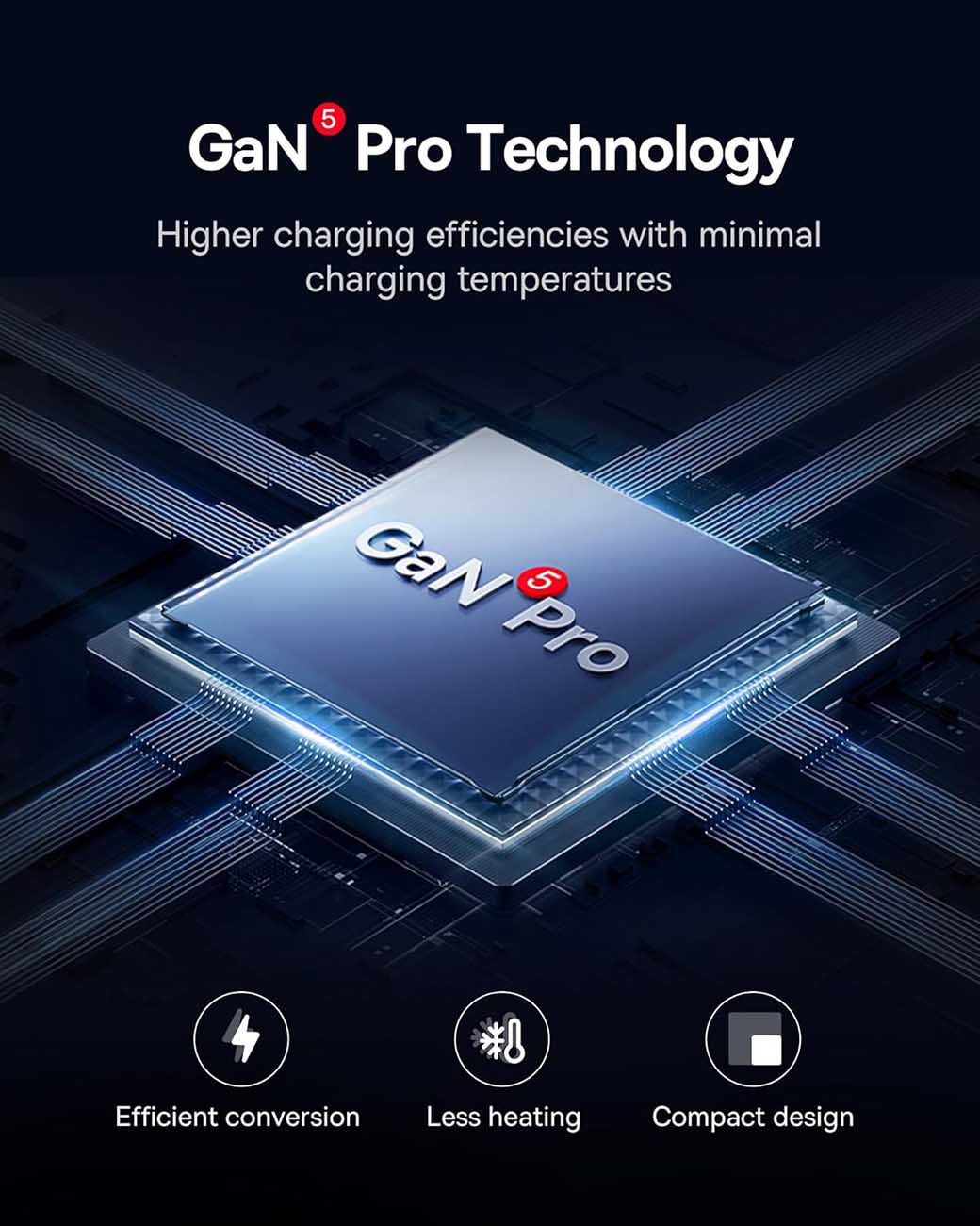 Operates with 65W power and GaN5 Pro technology .. preventing overheating while ensuring fast and powerful charging.