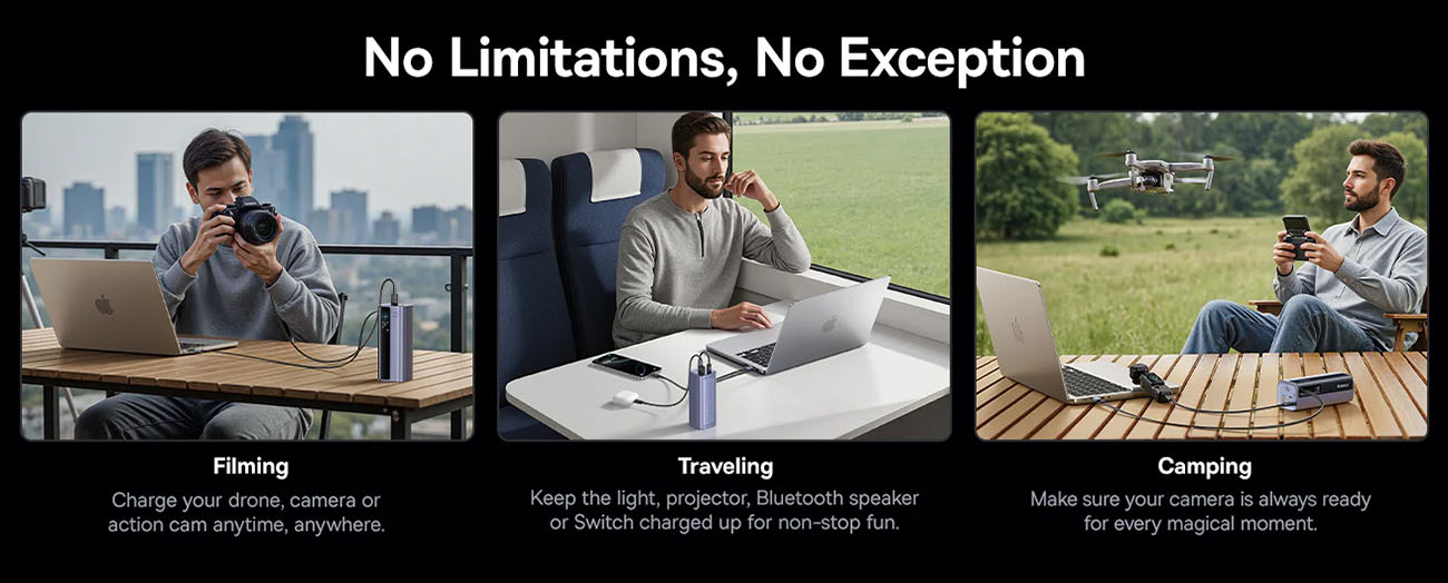 Equipped with dual Type-C ports + one USB port.