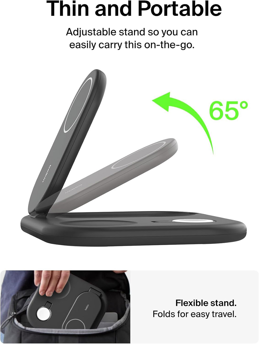 Moft Stand + Tripod for iPhone / Adjustable Angles / Foldable / Convert to Tripod / MagSafe / Black