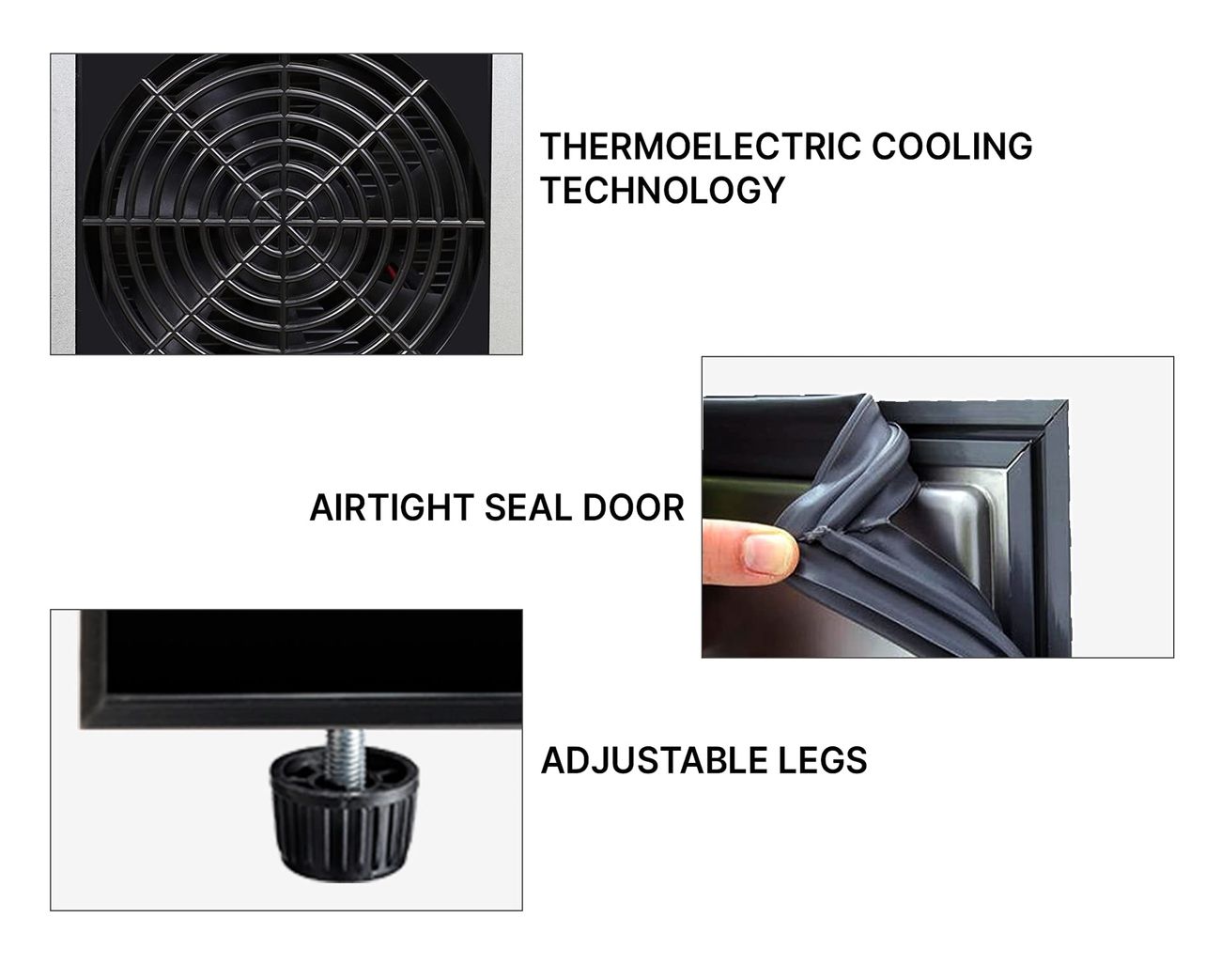 Adjustable feet to level the fridge on any surface and reduce vibrations.