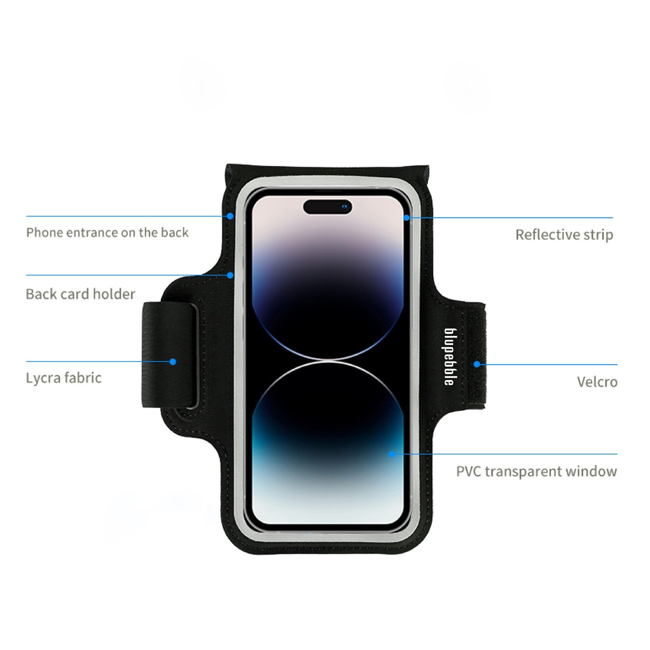 High-quality sports armband from Blupebble .. allowing you to secure your phone on your arm during sports activities.