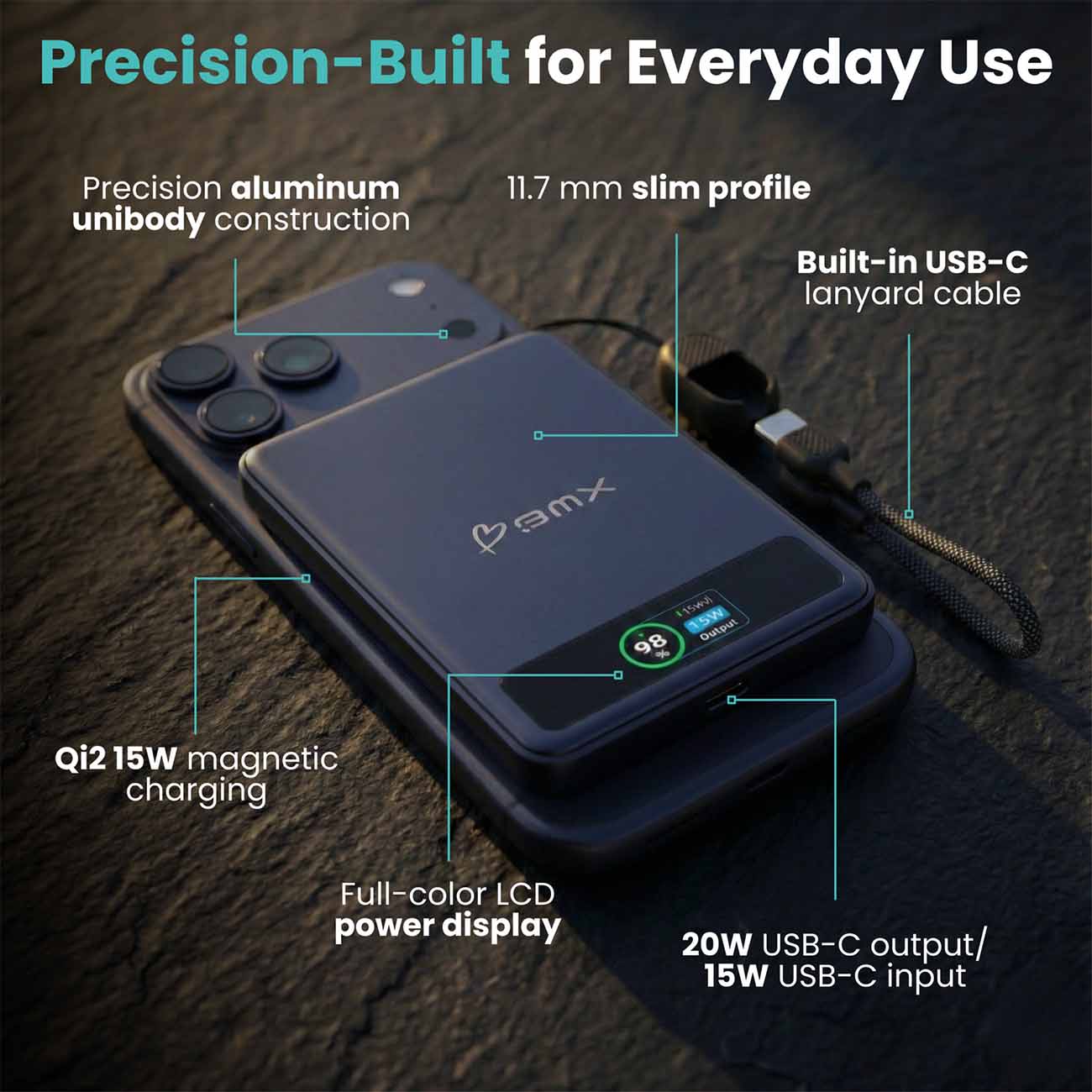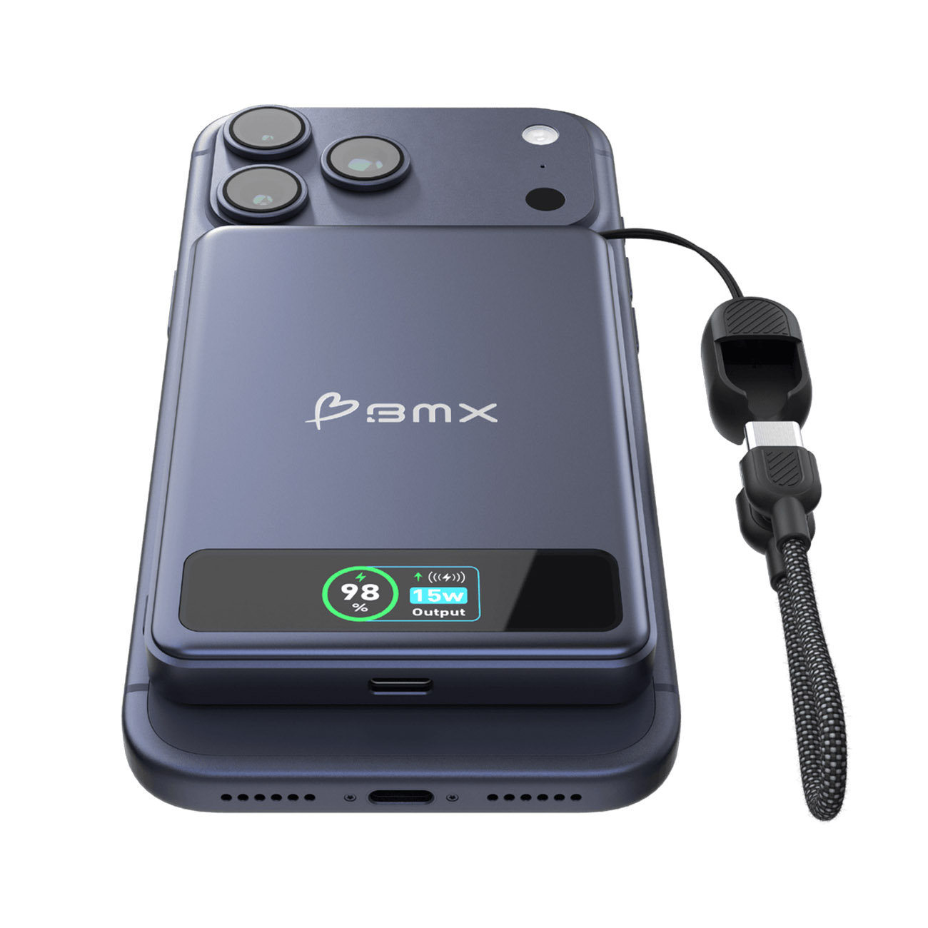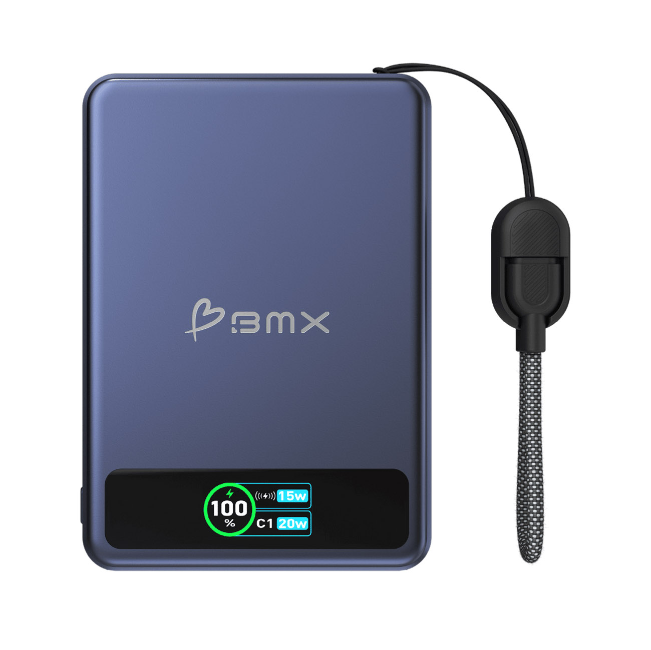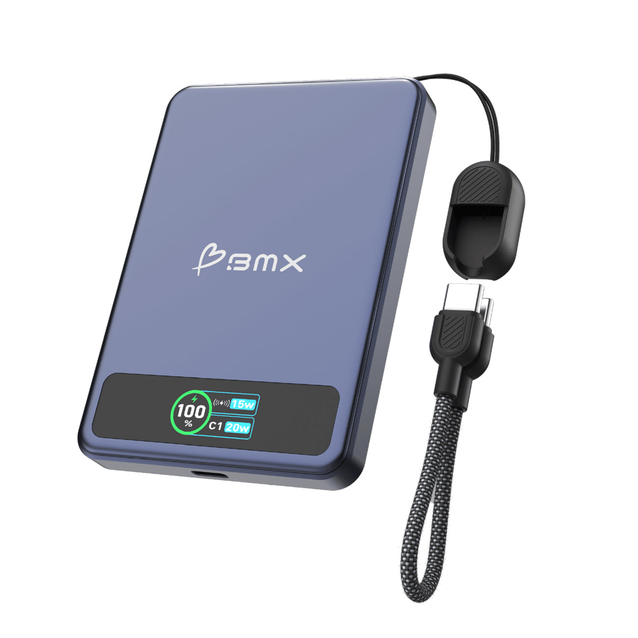 BMX 5,000mAh Power Bank / 1 Type-C Port + Wireless Charging / Built-in Type-C Cable / Black