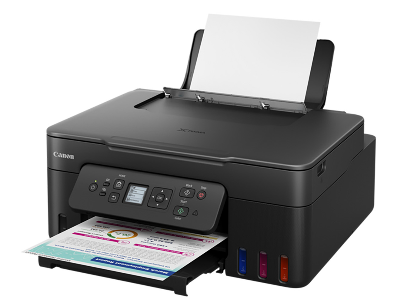 Equipped with high-capacity ink tanks to reduce printing costs.