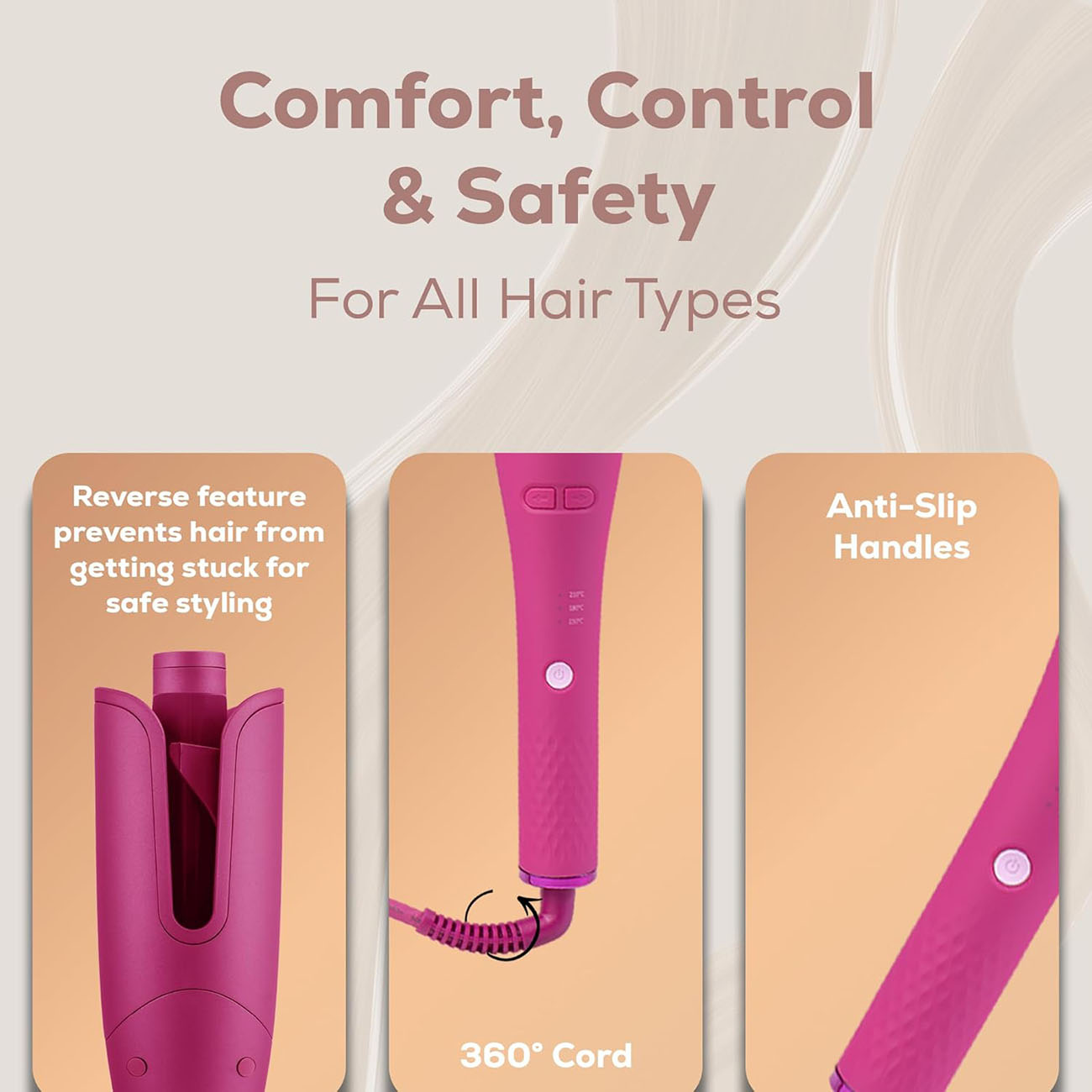 Clara Hair Multi-Styler / 6 in 1 Design / With Auto-Wrap Curlers / Pink