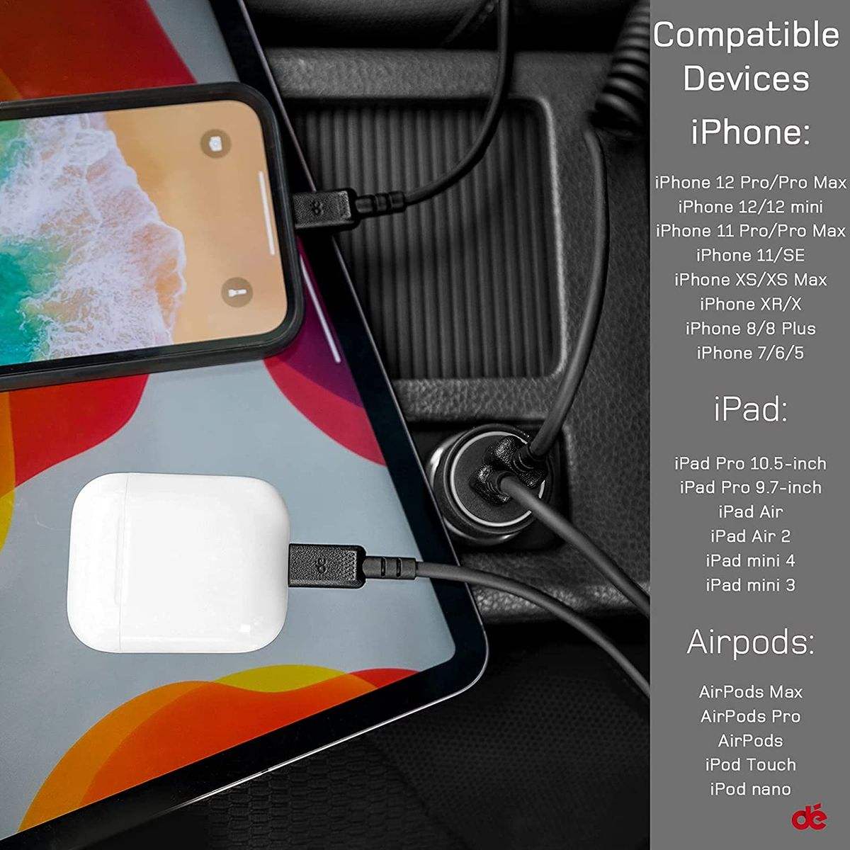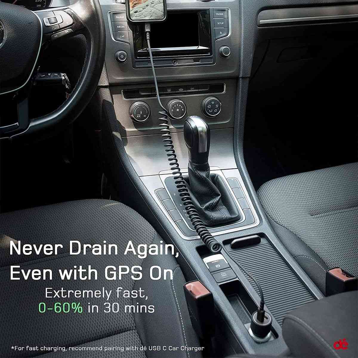 0 to 60% in 30min / Extremely fast charger for your iPhone 12/iPhone 13, 0 to 60% in 30mins or 90% in 1hr. Best for long-distance driving, even with GPS on. Recommend pairing with dé 20W PD USB-C Car Charger for maximum charging speed. Support fast charging for all iPhone 8 and later models.