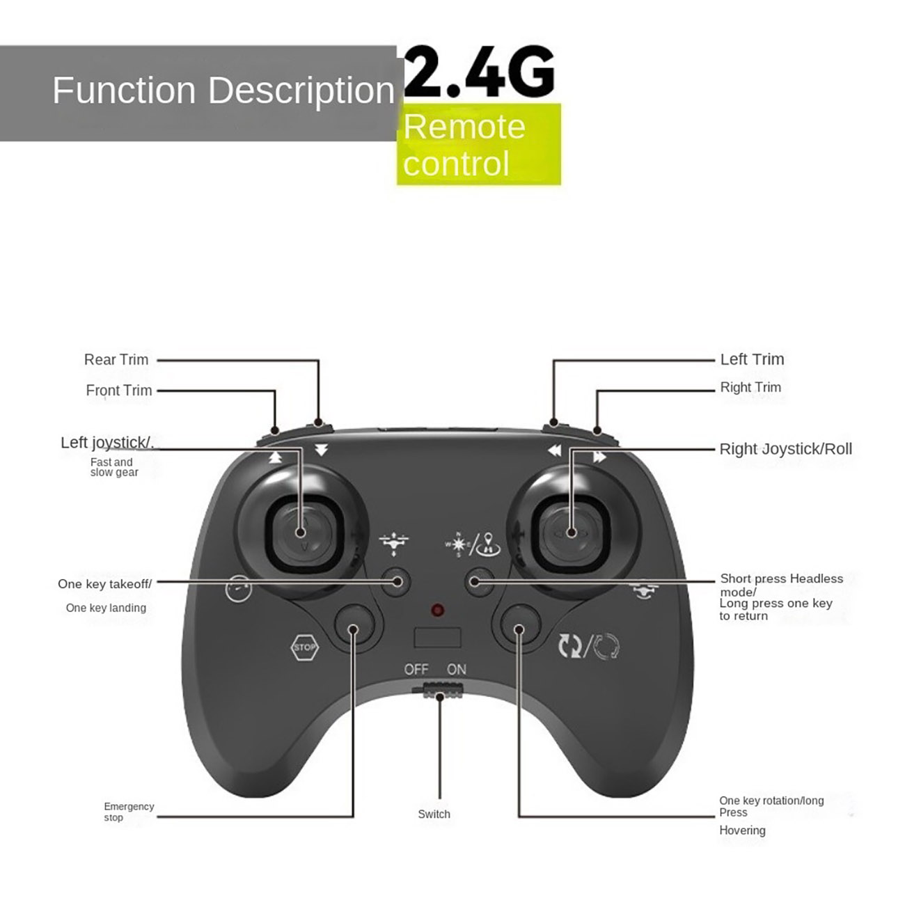Offers 3 flight speeds with stunt moves and automatic flight modes.