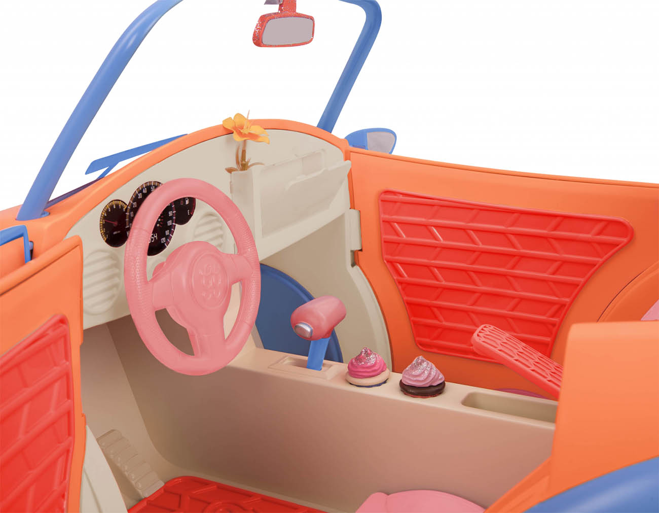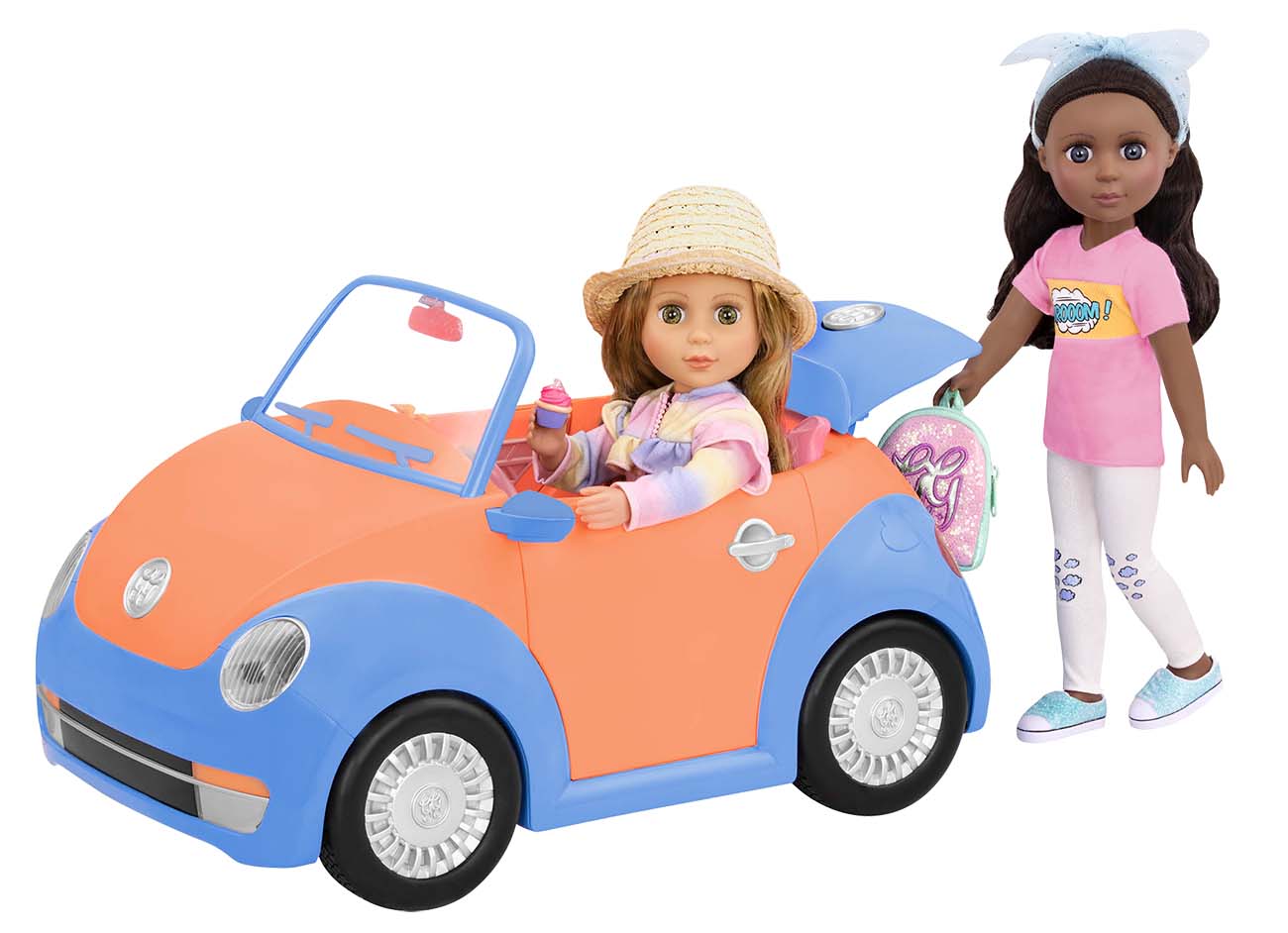 Includes a rear trunk that opens and interior storage compartments for carrying doll travel essentials.