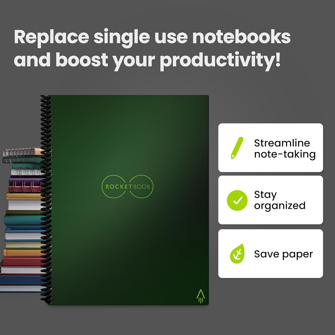 Rocketbook Core Smart Notebook / Reusable / Includes Pen / Size 8.8 x 6 inches