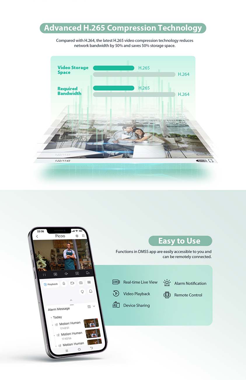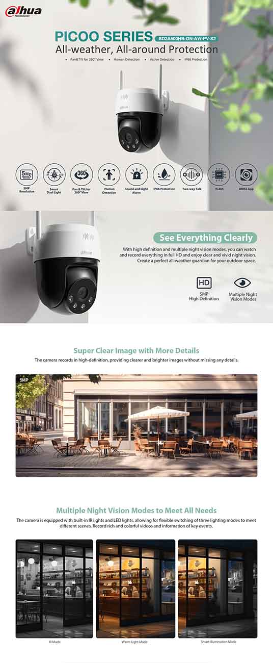 Dahua Picoo A2 Security Camera / 5MP Resolution / Live Streaming & Mobile Alerts / Outdoor Use