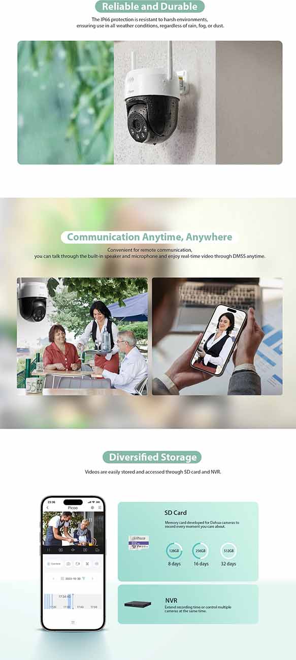 Dahua Picoo A2 Security Camera / 3MP Resolution / Live View & Mobile Alerts / Outdoor Use