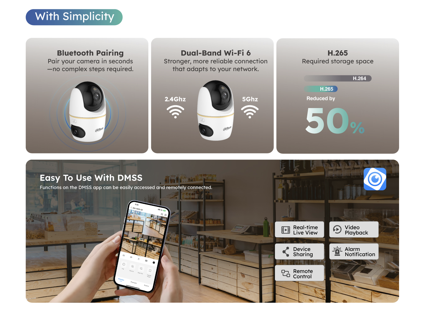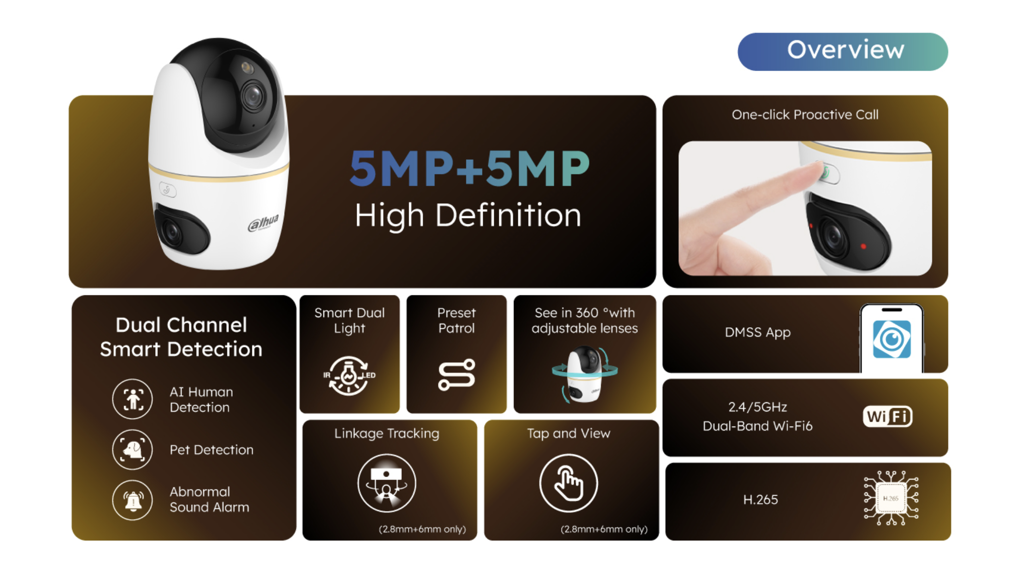 Dahua Hero Dual D1 Security Camera / 2K Dual-Lens / Wi-Fi 6 / Live Streaming + Phone Alerts