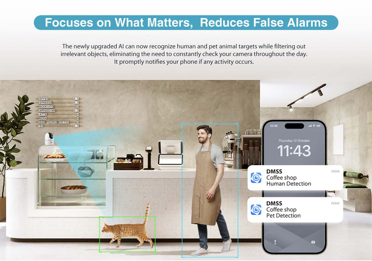 Dahua Hero Dual D1 Security Camera / 3K Dual-Lens / Wi-Fi 6 / Live Streaming + Phone Alerts