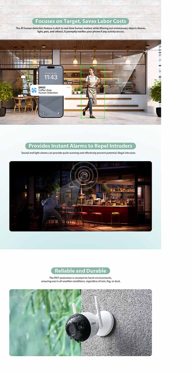 Dahua Hero Dual D1 Security Camera / 2K Dual-Lens / Wi-Fi 6 / Live Streaming + Phone Alerts