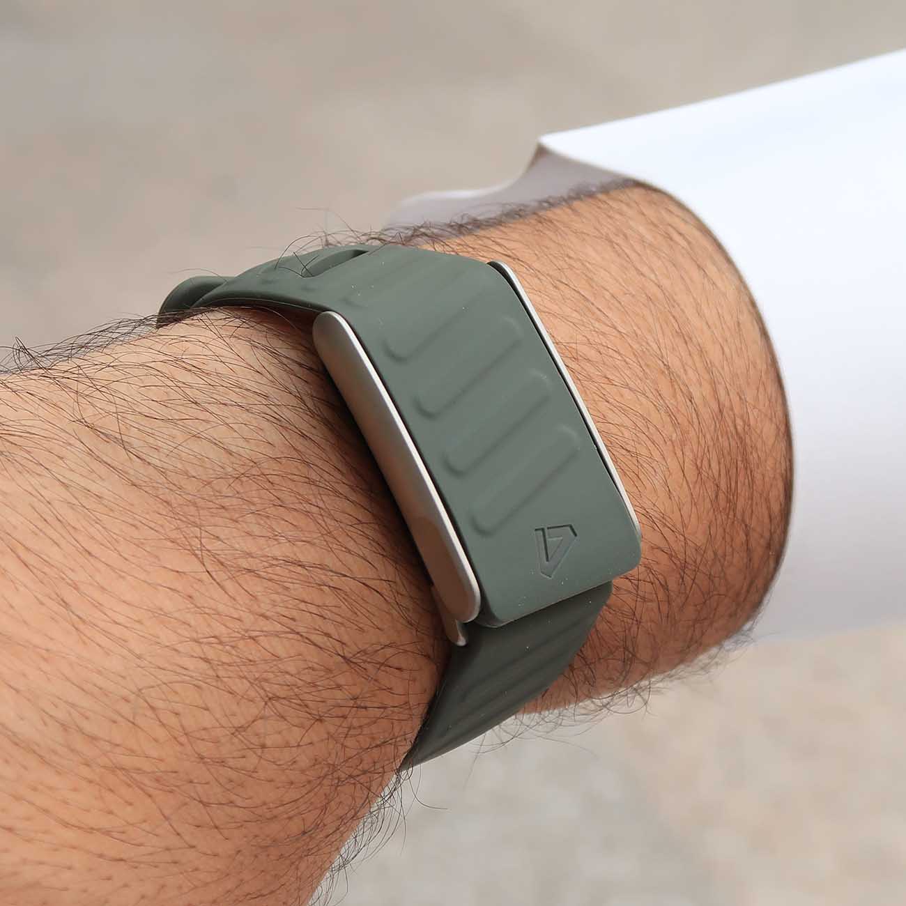 Dash Strap For Whoop 5 MG / Soft Silicone / Green with Shiny Silver Frame