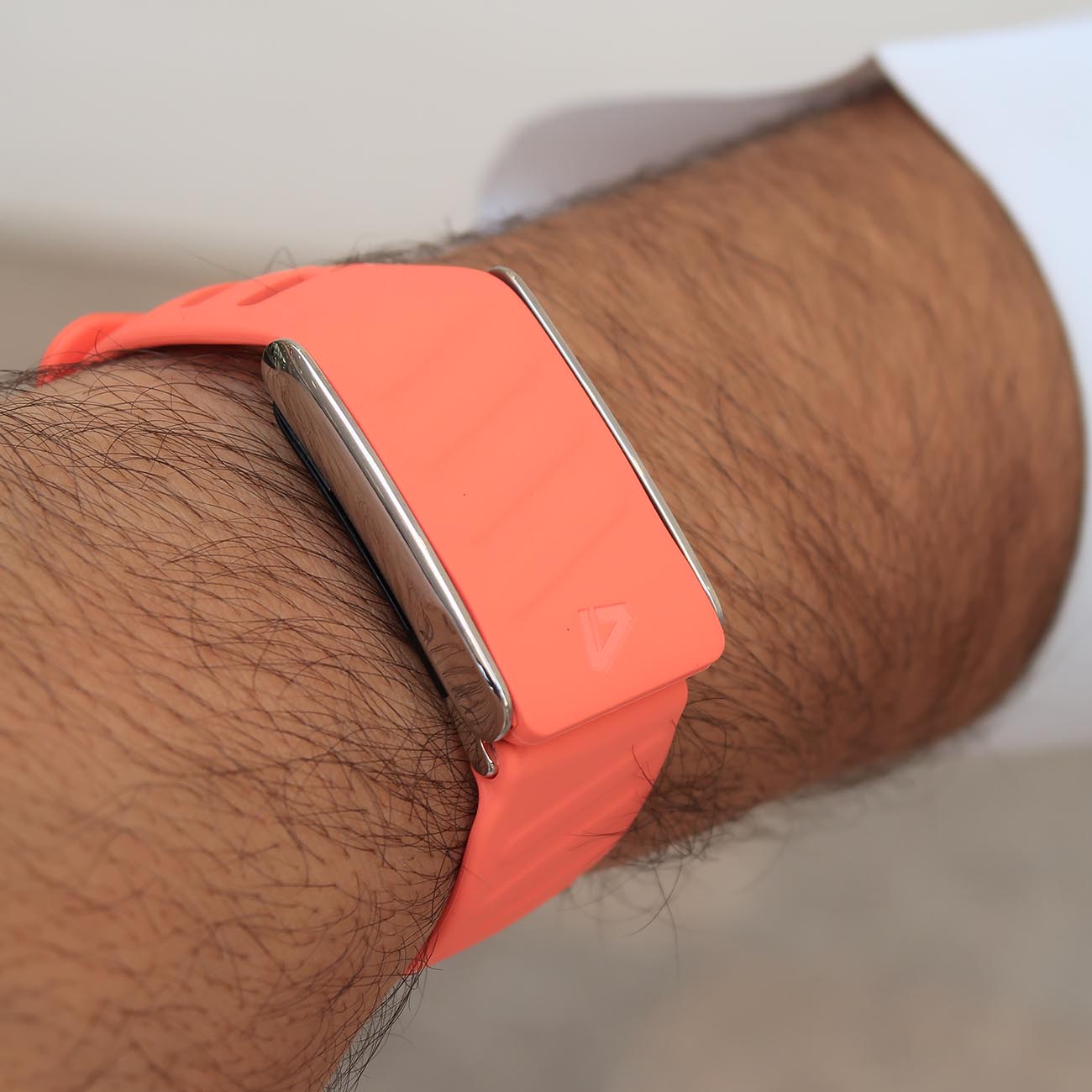 Dash Strap For Whoop 5 MG / Soft Silicone / Coral with Matte Silver Frame