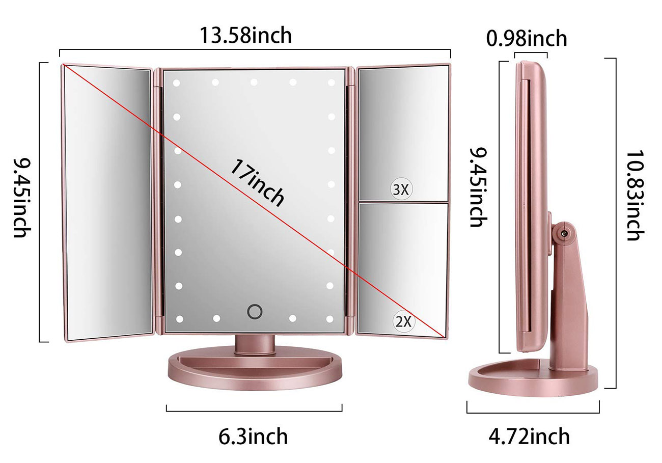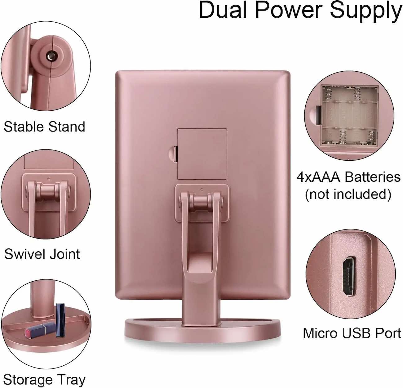 Features 21 smart LED lights .. providing ideal lighting for makeup .. skincare .. and more.