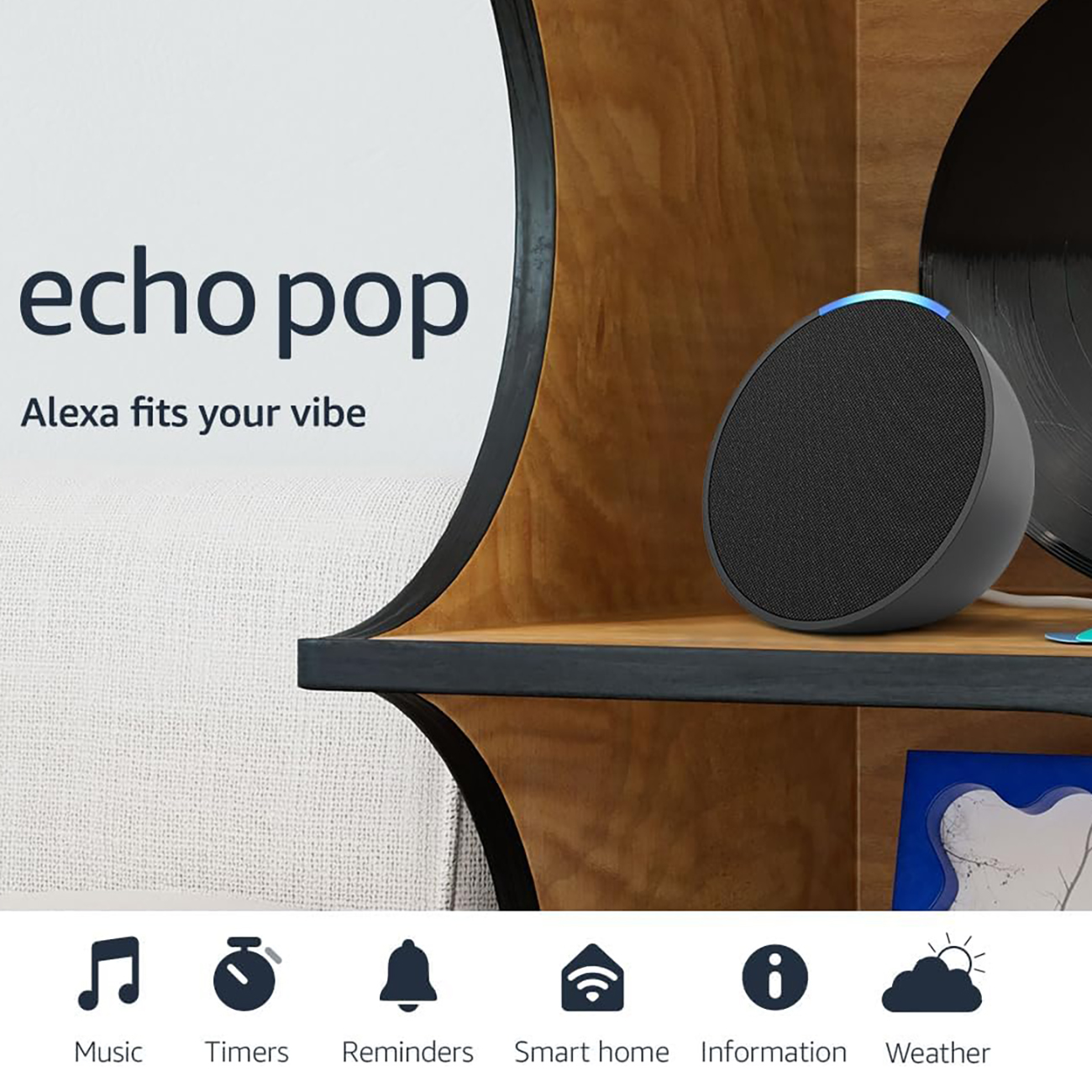 Amazon Echo Pop Speaker / with Smart Alexa Assistant / Glacier White