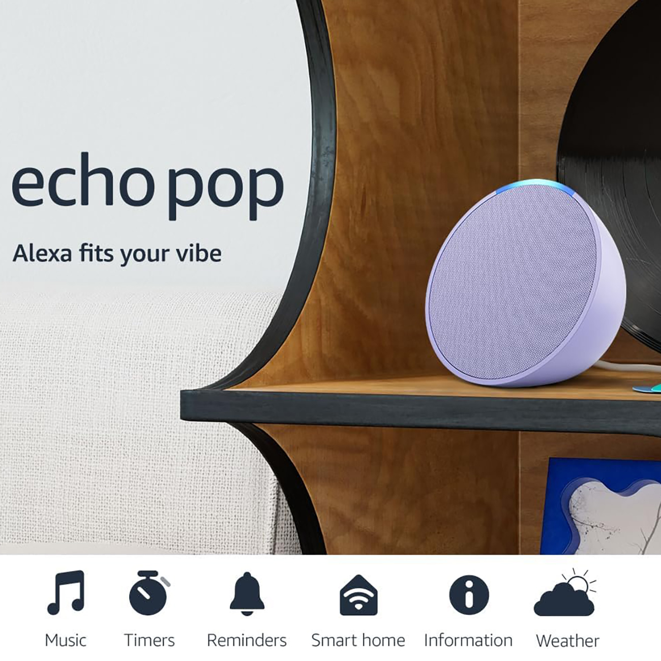 Amazon Echo Pop Speaker / with Smart Alexa Assistant / Glacier White