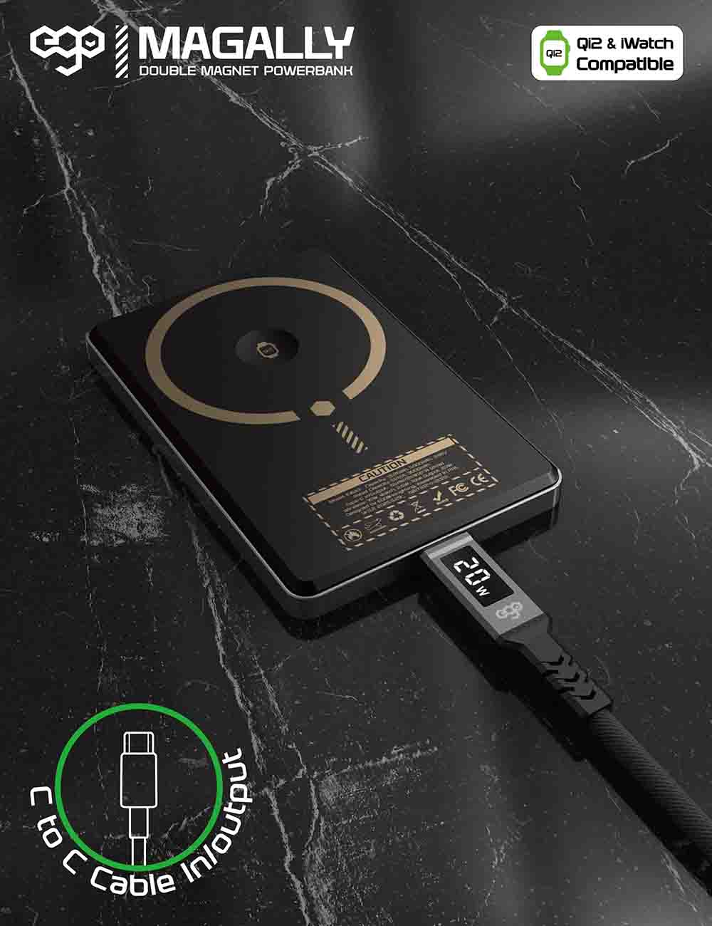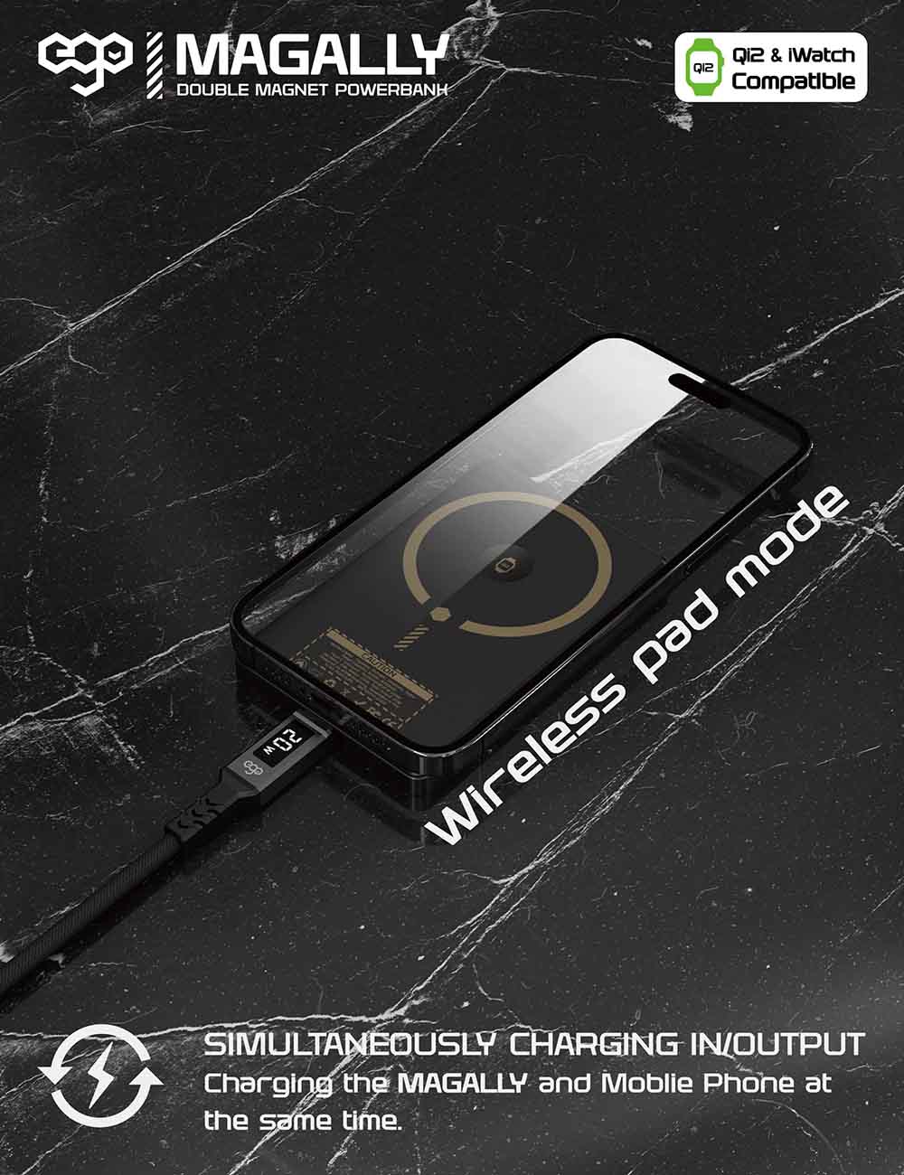 EGO Magpower Magnetic Power Bank 5th Gen / 10,000mAh Capacity / Support MagSafe / Black