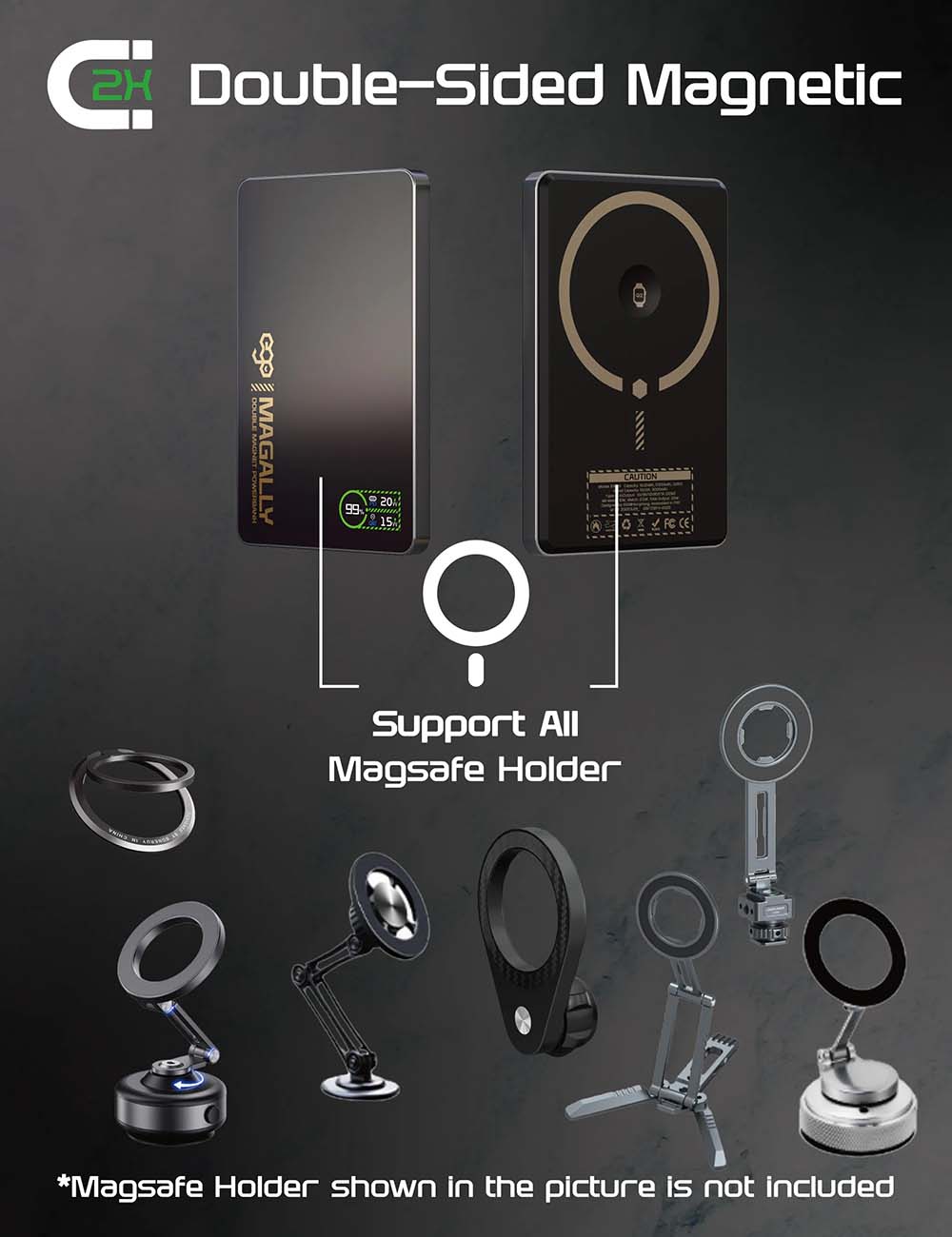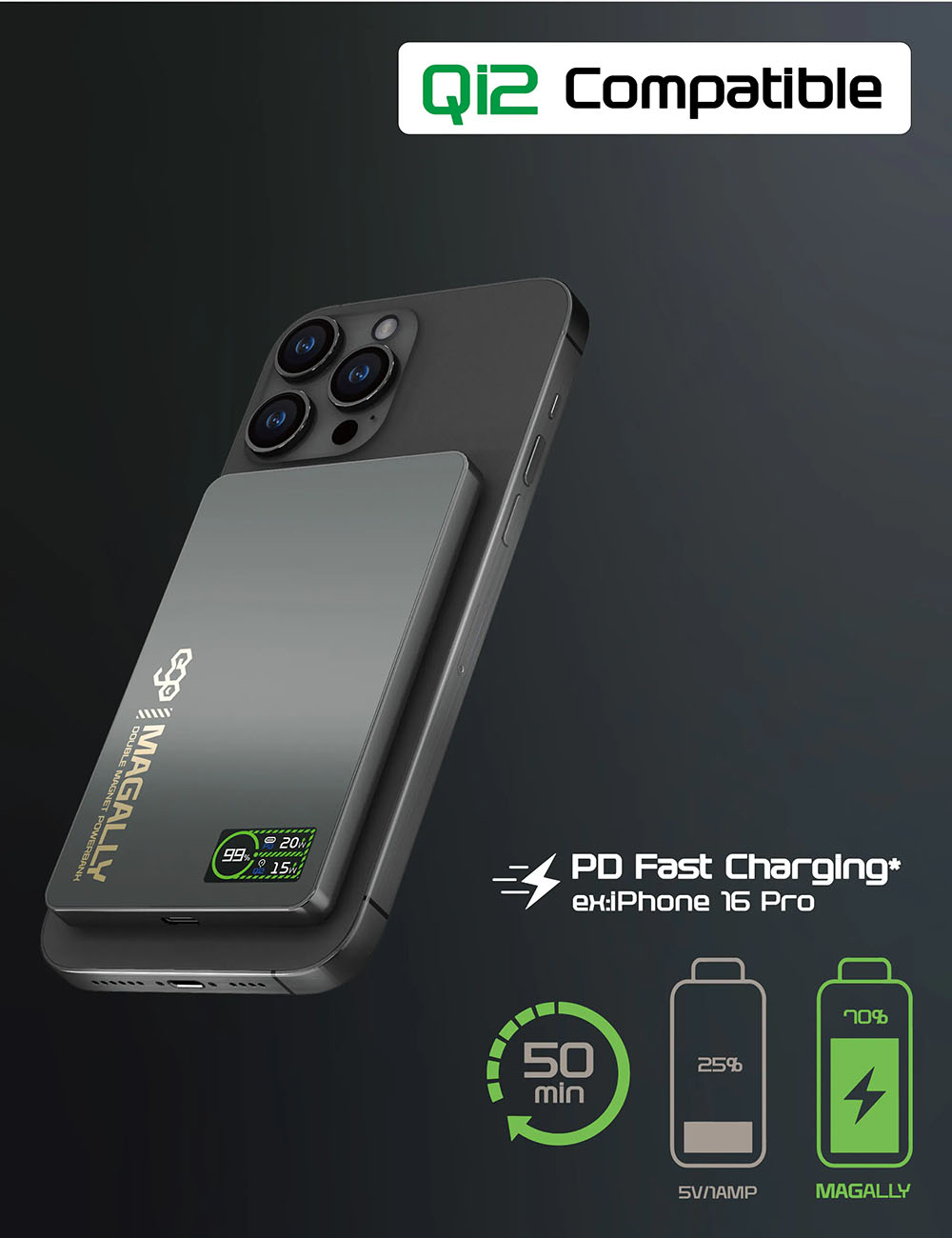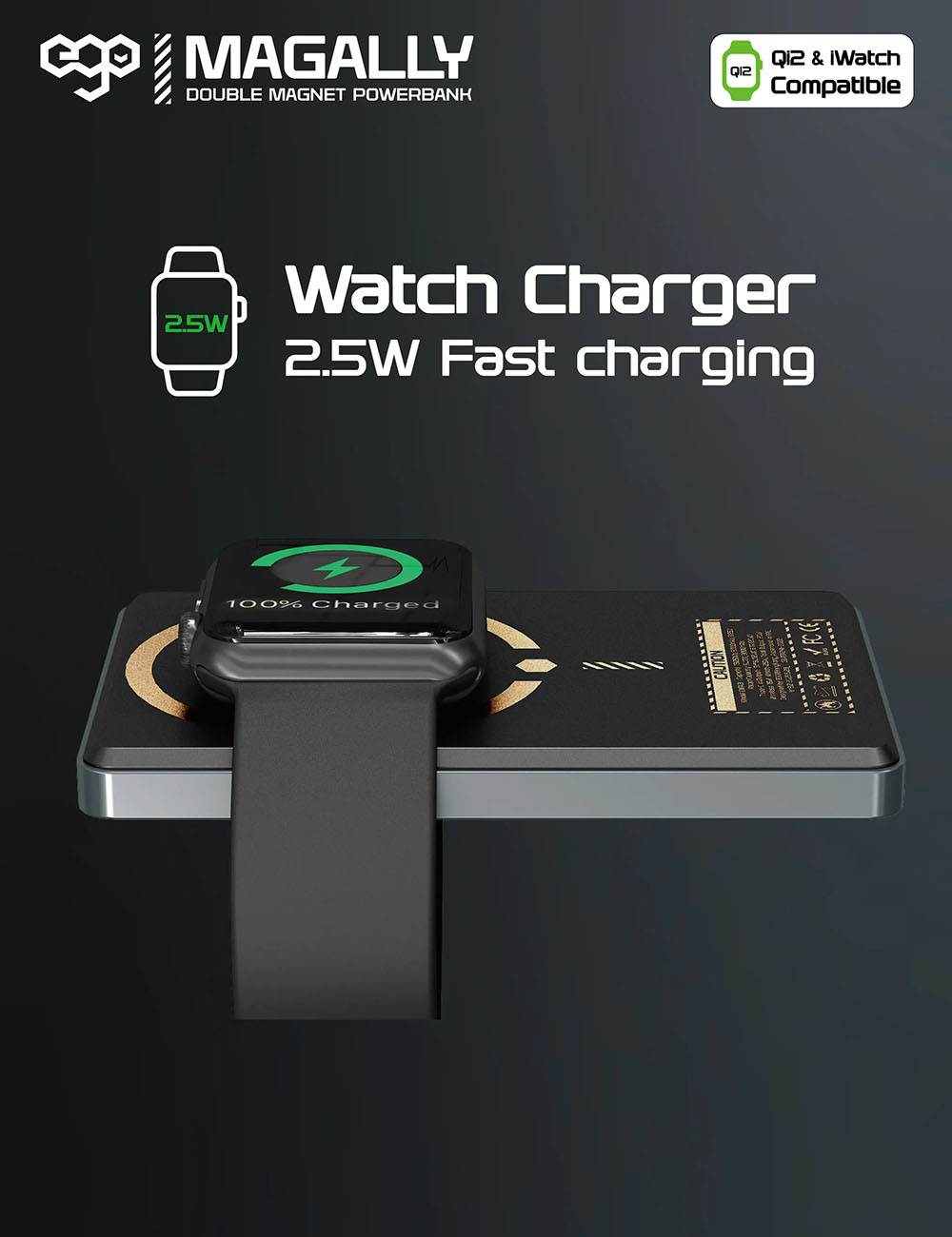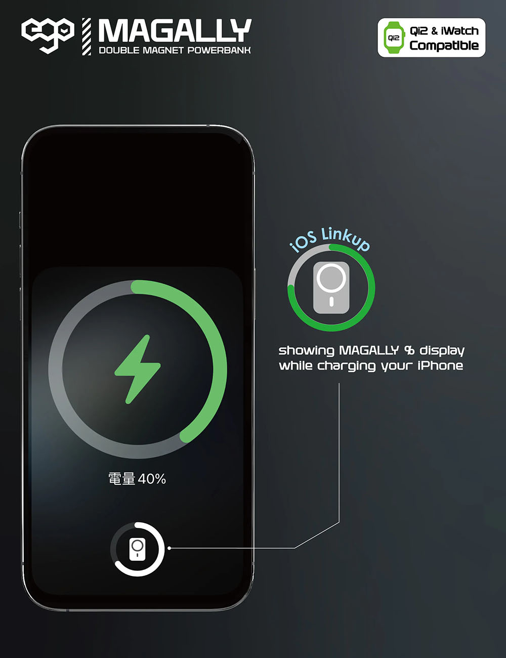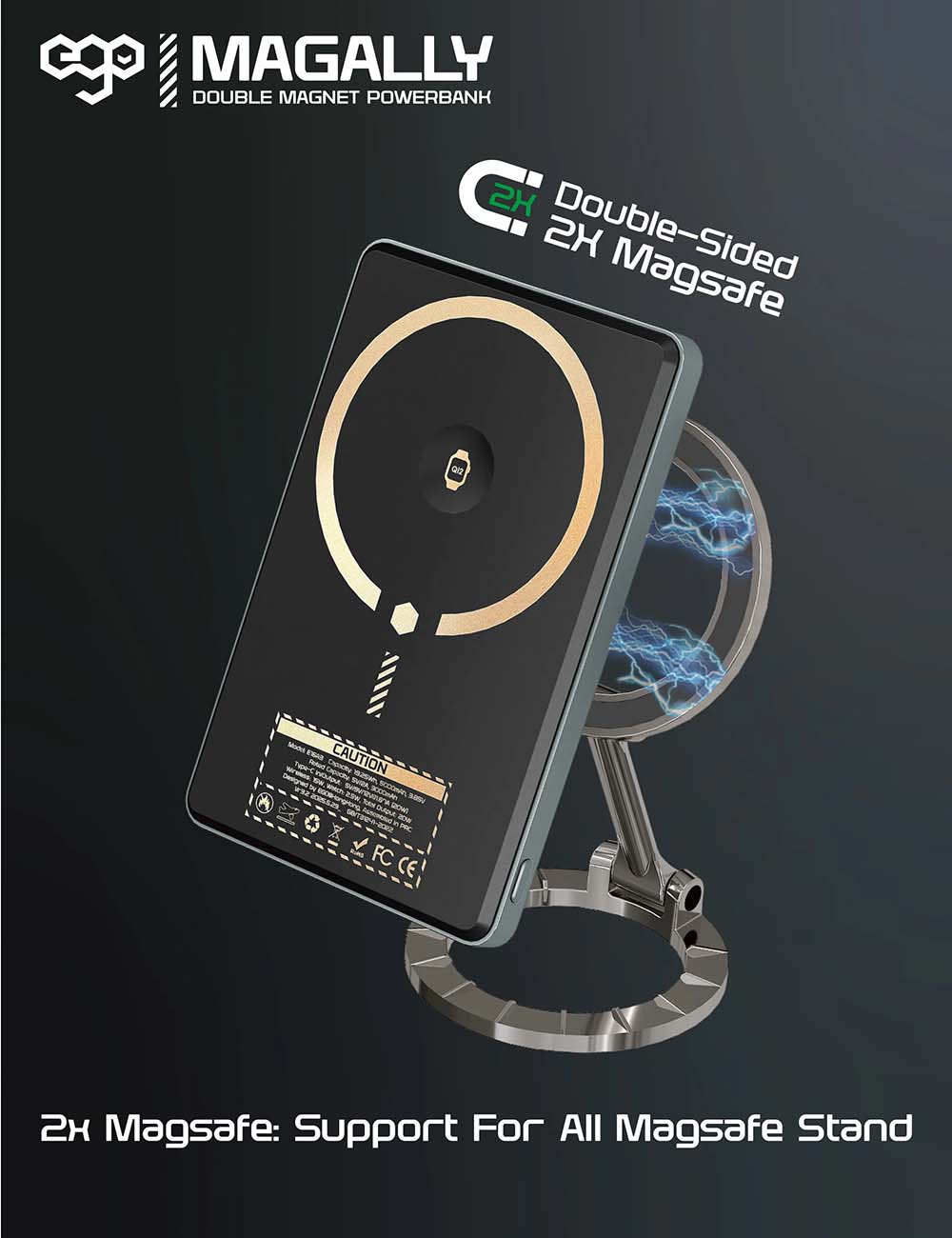 ego MagAlly Magnetic Power Bank / Dual Magnetic Design / 10000mAh / MagSafe Compatible / Black