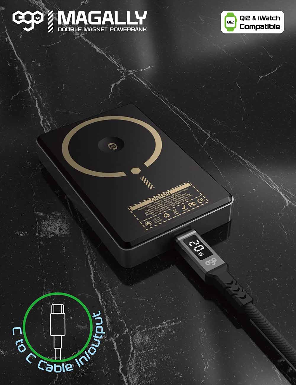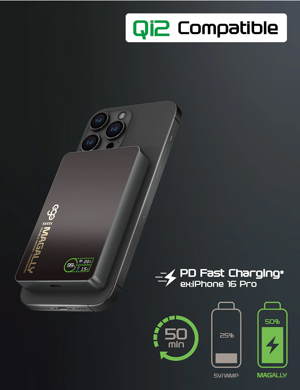 ESR Qi2 Magnetic Battery / 5000mAh Capacity / Built-in Stand / 15W Power / Black