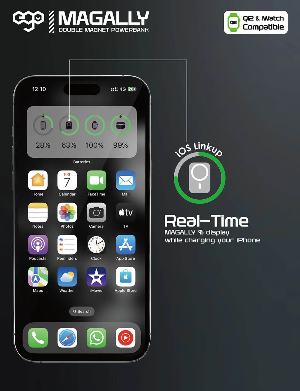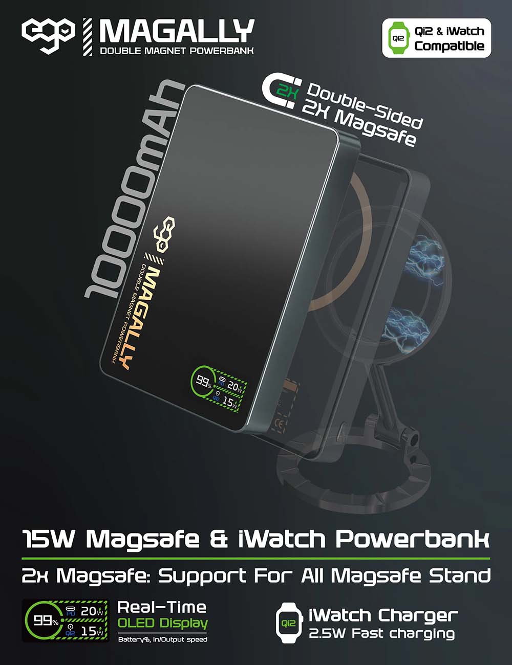 EGO MagPower 5U Magnetic Power bank / 10000 mAh Capacity / MagSafe Compatible / Pink