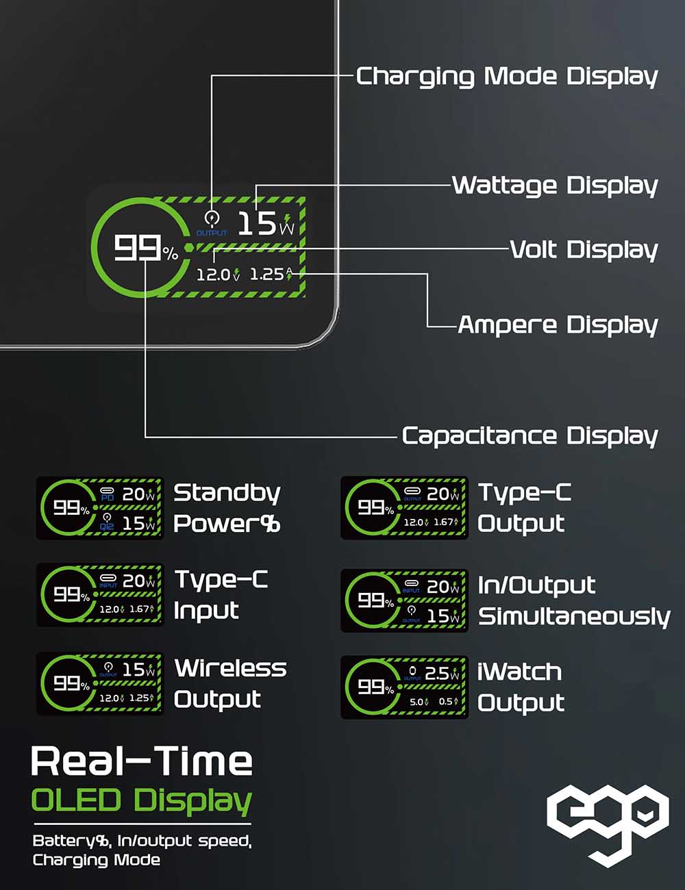 Green 80,000 mAh Powerbank / Built-in Solar Panels / Includes 4 Built-in Cables