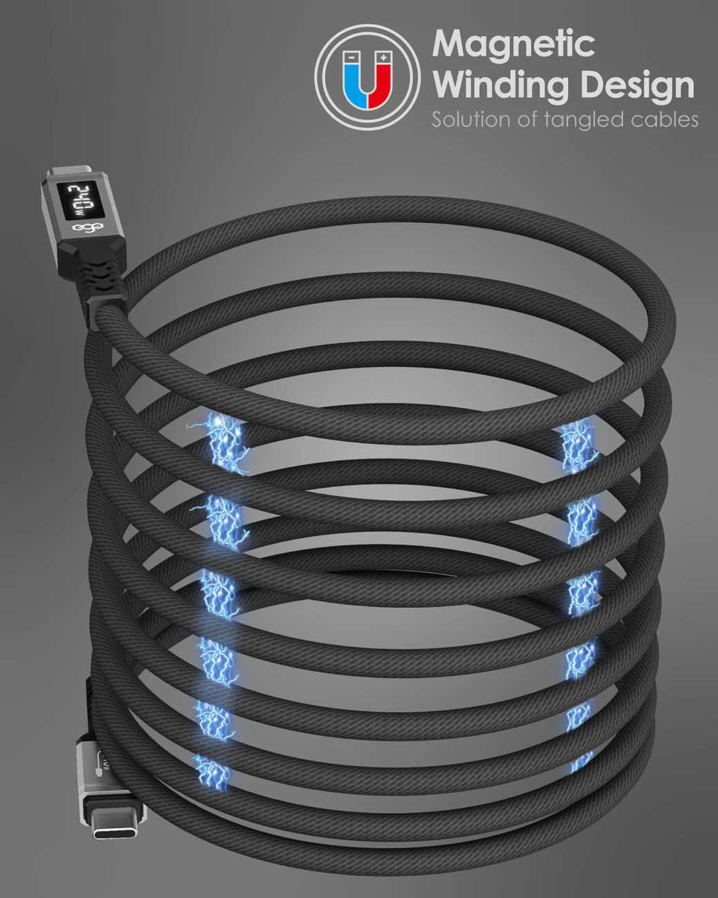 Magnetic design helps maintain the cable’s shape and prevent damage.