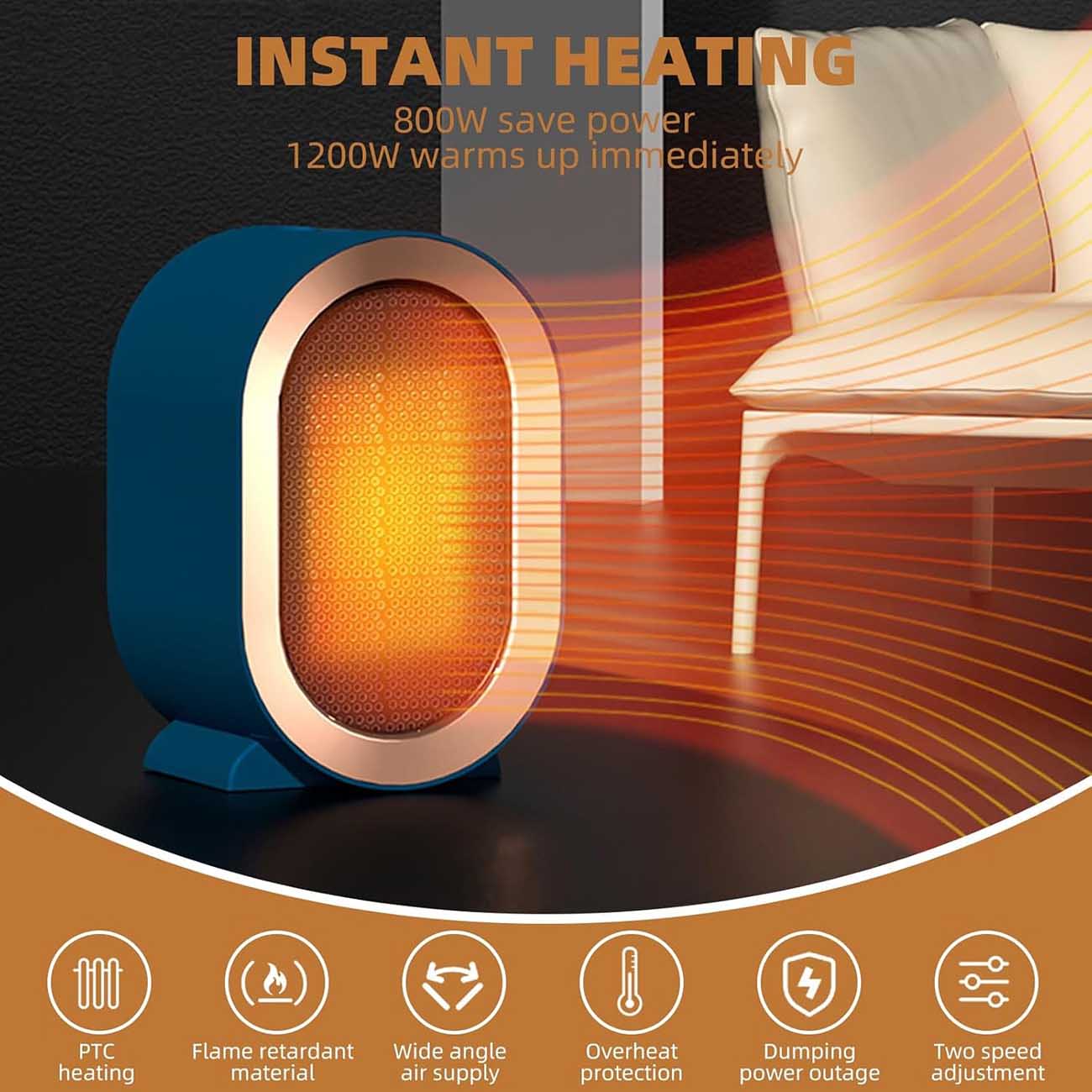 Electric Heater / 1200W Power / Small & Portable / Blue