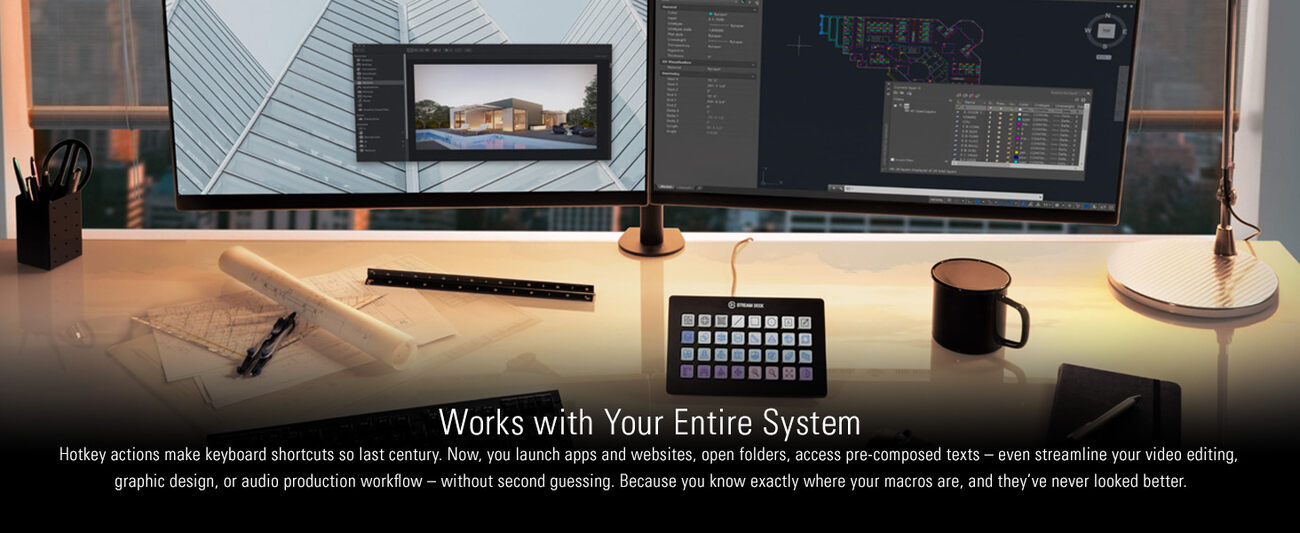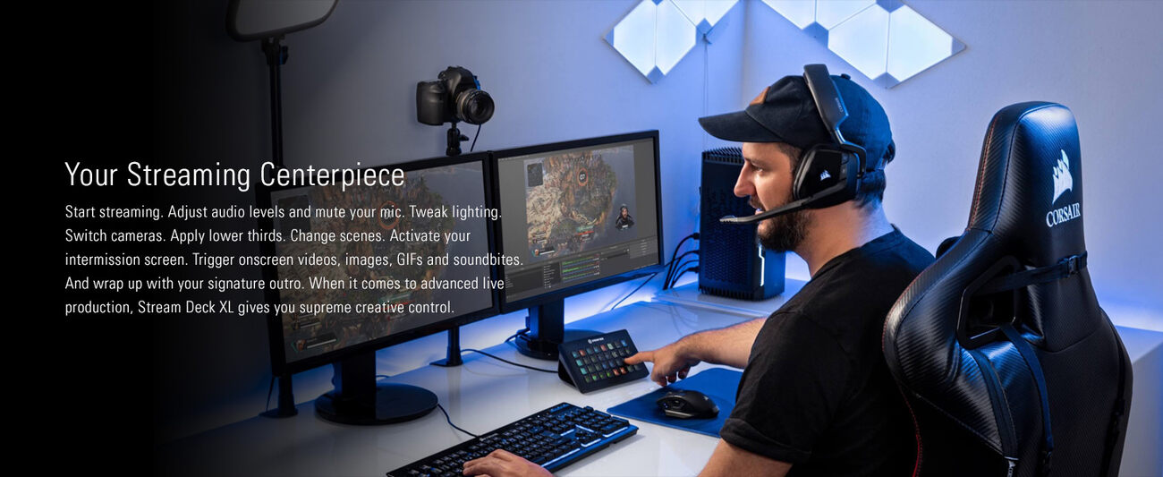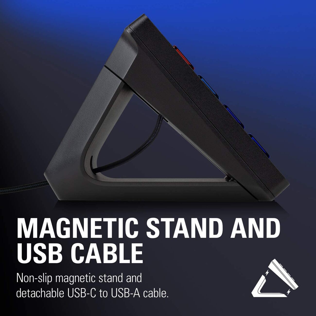 Non-slip magnetic stand keeps the Stream Deck XL secure on the desk.