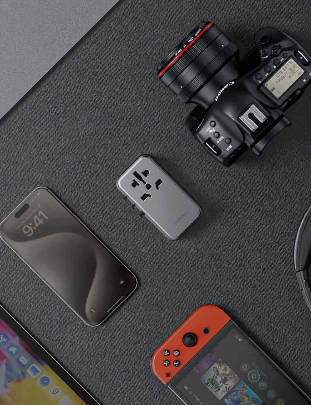 EGO Travel Adapter / With 4 Ports / Universal Compatibility / 120W Power / Black