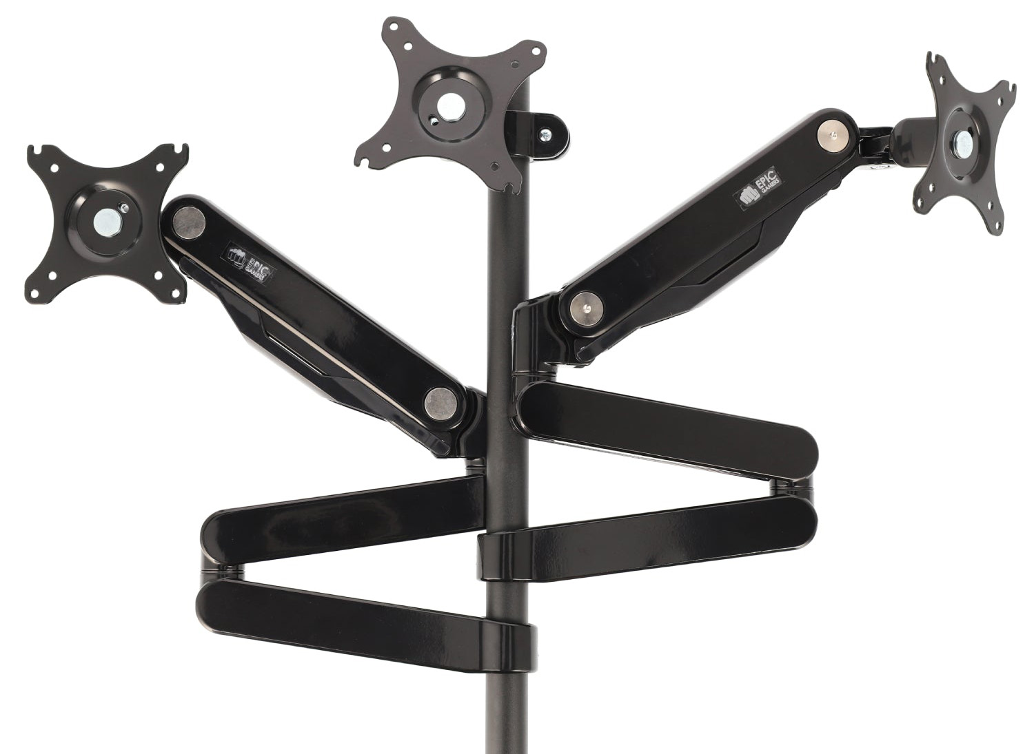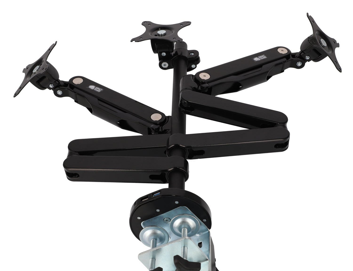Flexible screen arm that securely attaches your screens to the table, allowing for practical and easy angle adjustments.