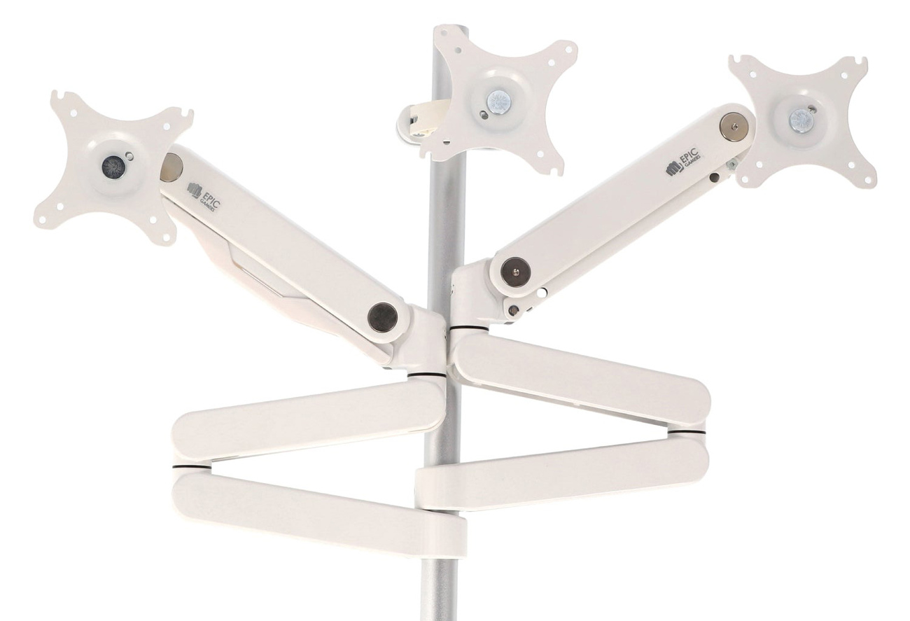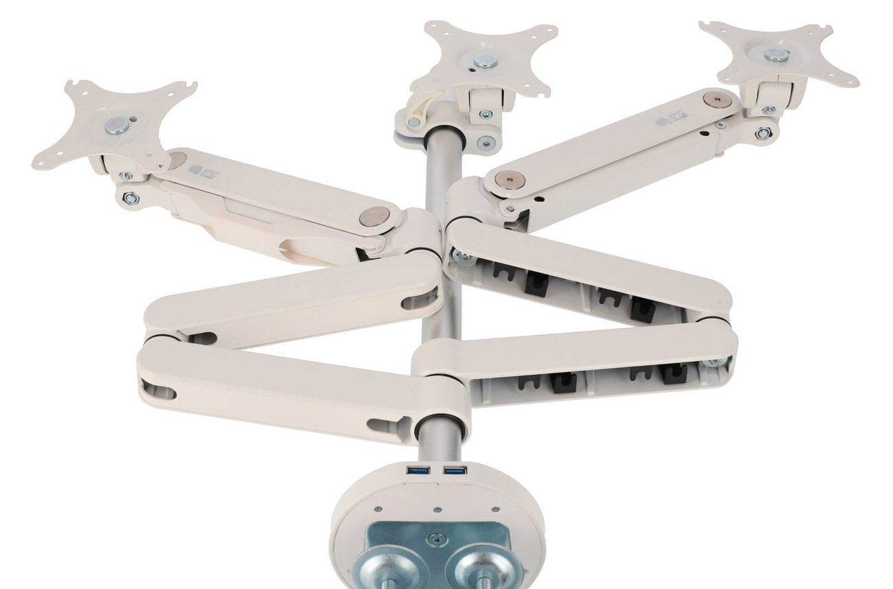 Flexible screen arm that securely attaches your screens to the table, allowing for practical and easy angle adjustments.