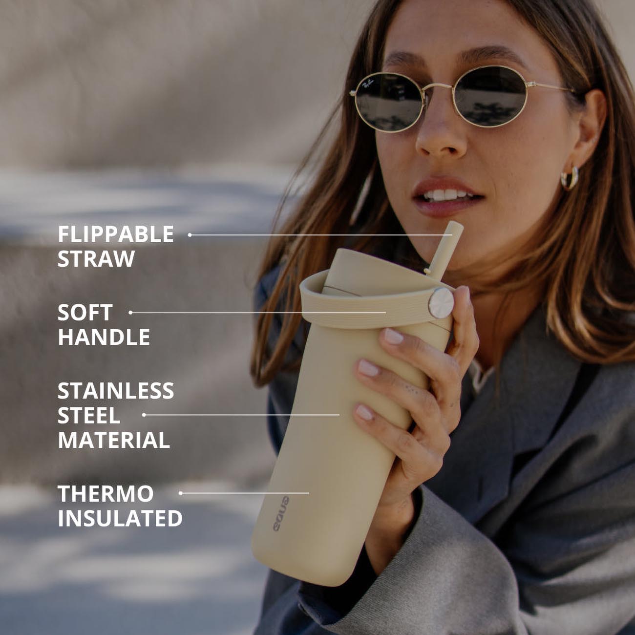 EQUA Carry Cup Bottle / 600ml Capacity / Keeps Drinks Cold & Hot / Butter