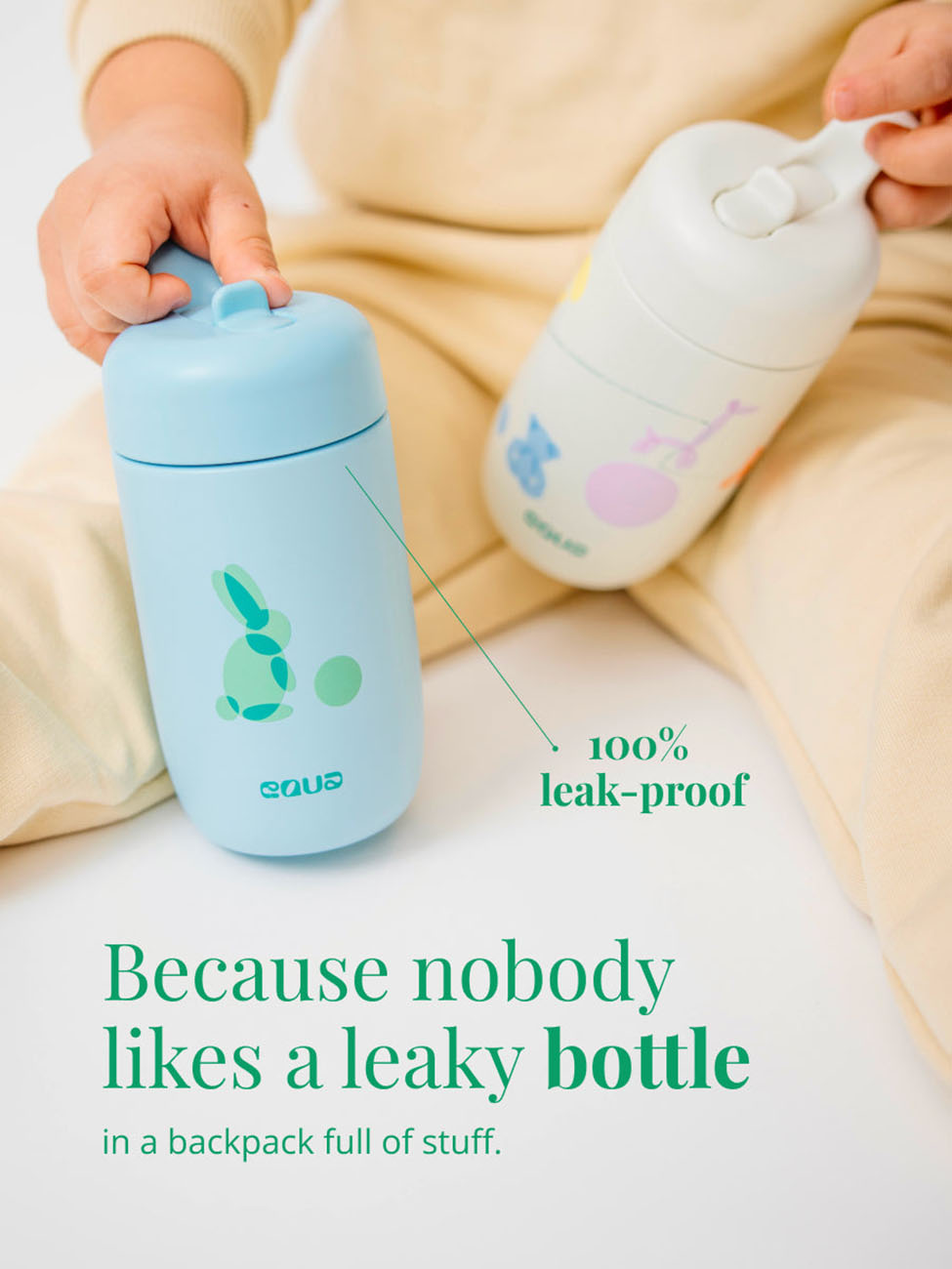 EQUA Kids Bottle / 400ml Capacity / 100% Leakproof / Teddy Bear Design