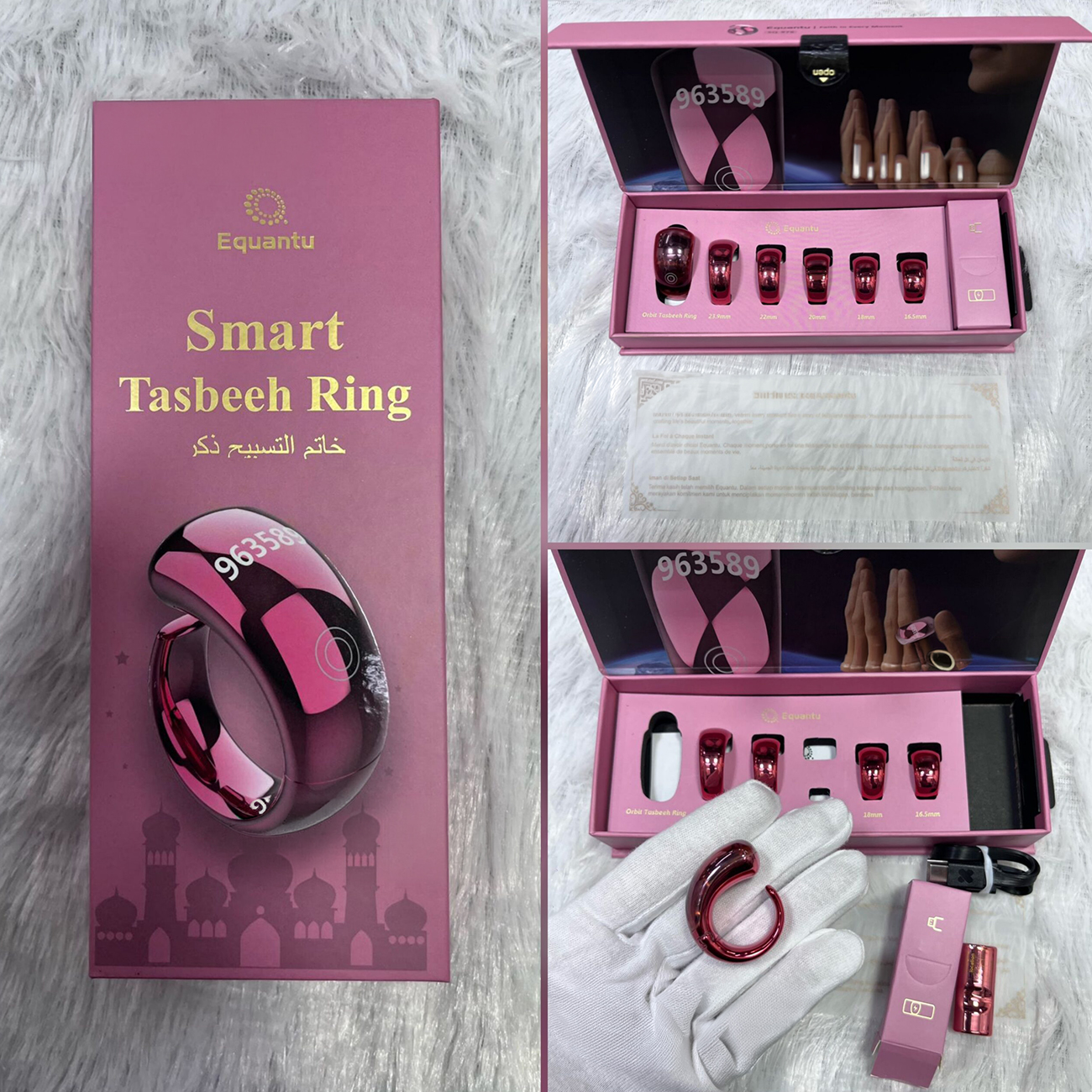 Equantu Smart Tasbih Ring / Mobile App Control & Prayer Reminder / Supports 5 Sizes / Black