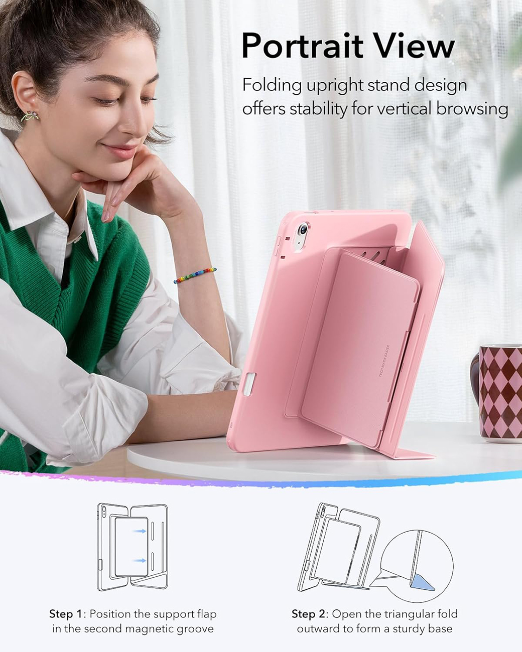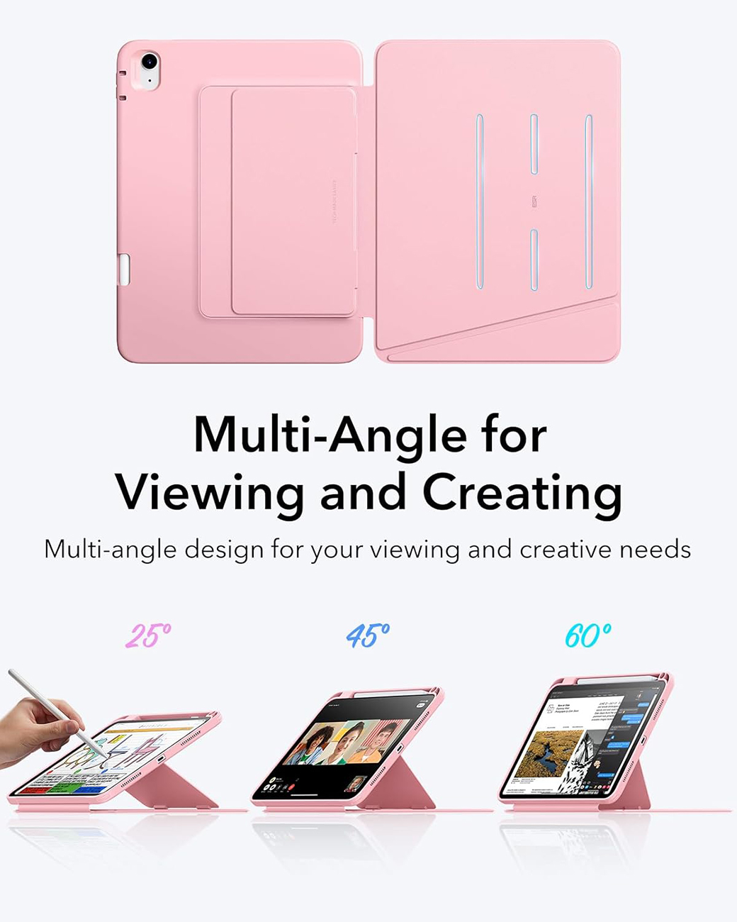 ESR Flip Magnetic Case for iPad A16 11-inch (2025) & iPad 10th Gen (2022) / Built-in Stand / Pink