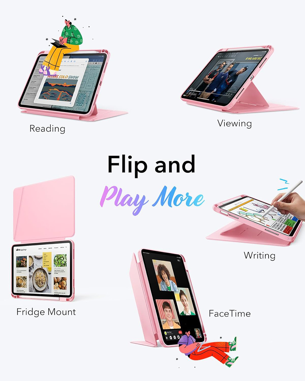ESR Flip Magnetic Case for iPad A16 11-inch (2025) & iPad 10th Gen (2022) / Built-in Stand / Pink in Qatar