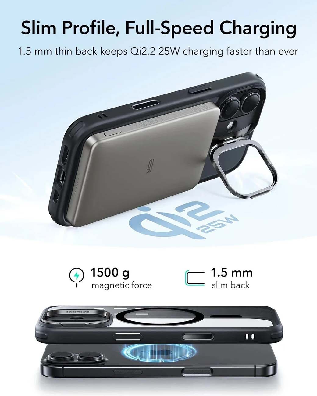 ESR Case for iPhone 17 Air / Built-in Stand / MagSafe / Drop-Resistant / Clear Black