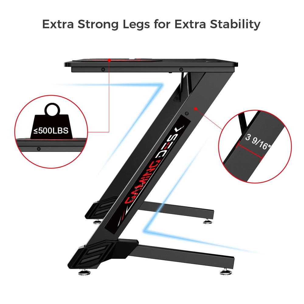 Featuring high quality metal Z shaped legs, Captain GD-4301 gaming desk is strong load-bearing, and corrosion resistant.