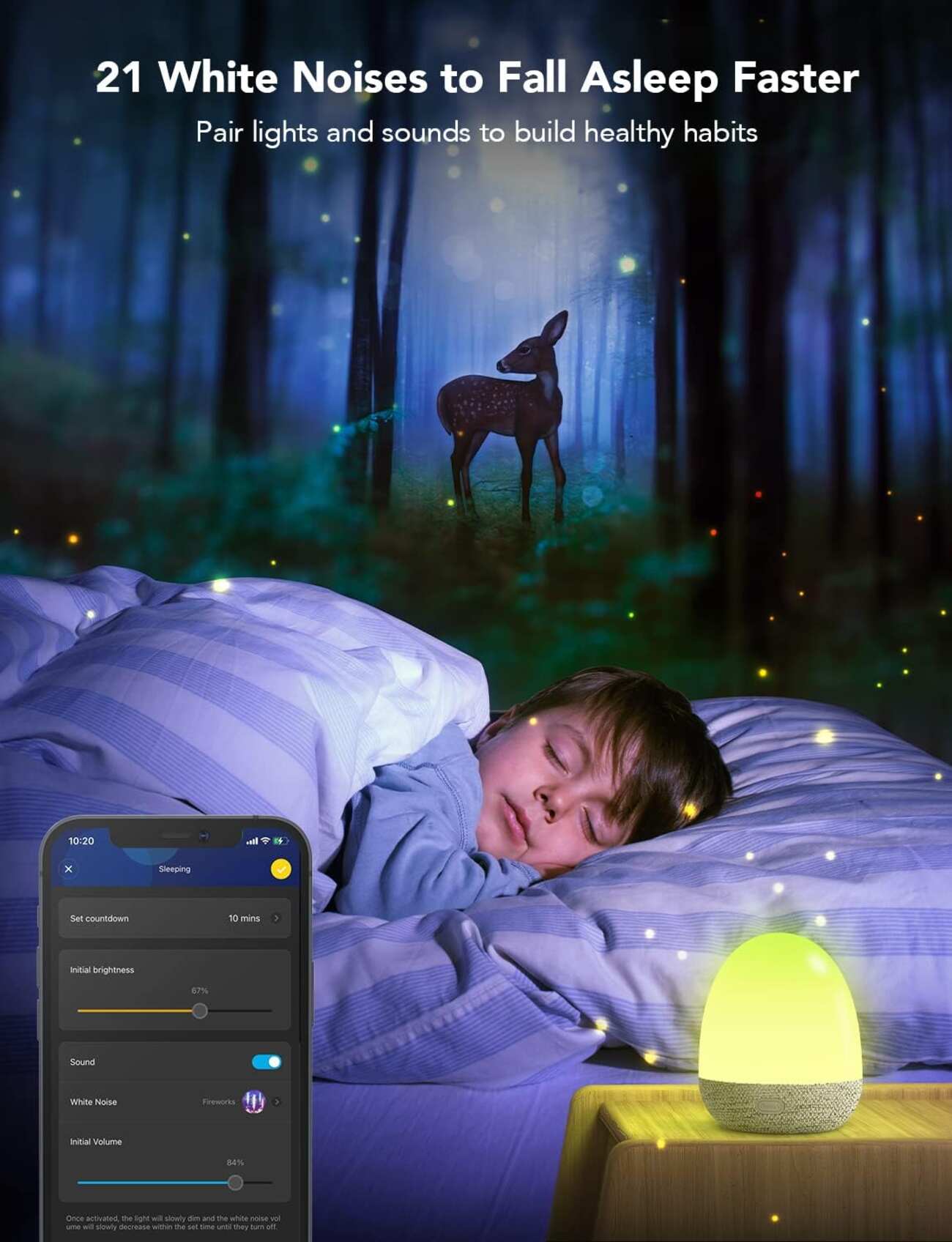 You can choose from 21 soothing white noise sounds, ensuring maximum relaxation and comfort.
