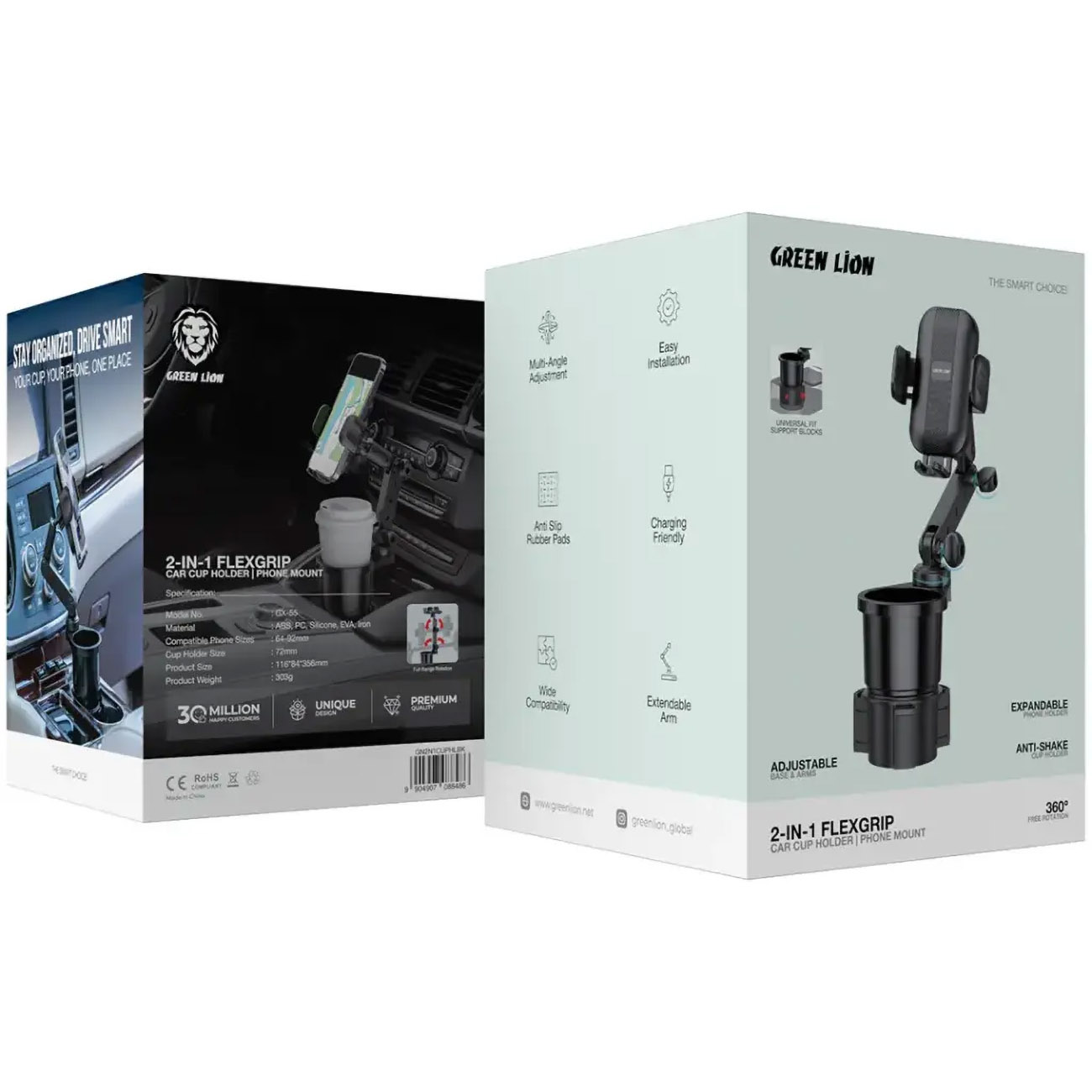 Green Magnetic Car Phone Mount / Supports Dual Phones / 360° Rotation