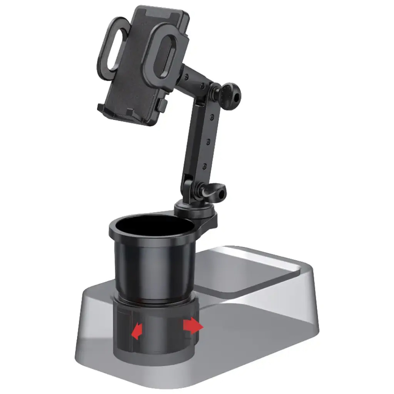 Green Car Cup Holder Stand with Expandable Food Tray / Supports 2.6 to 3.9 inch Cups