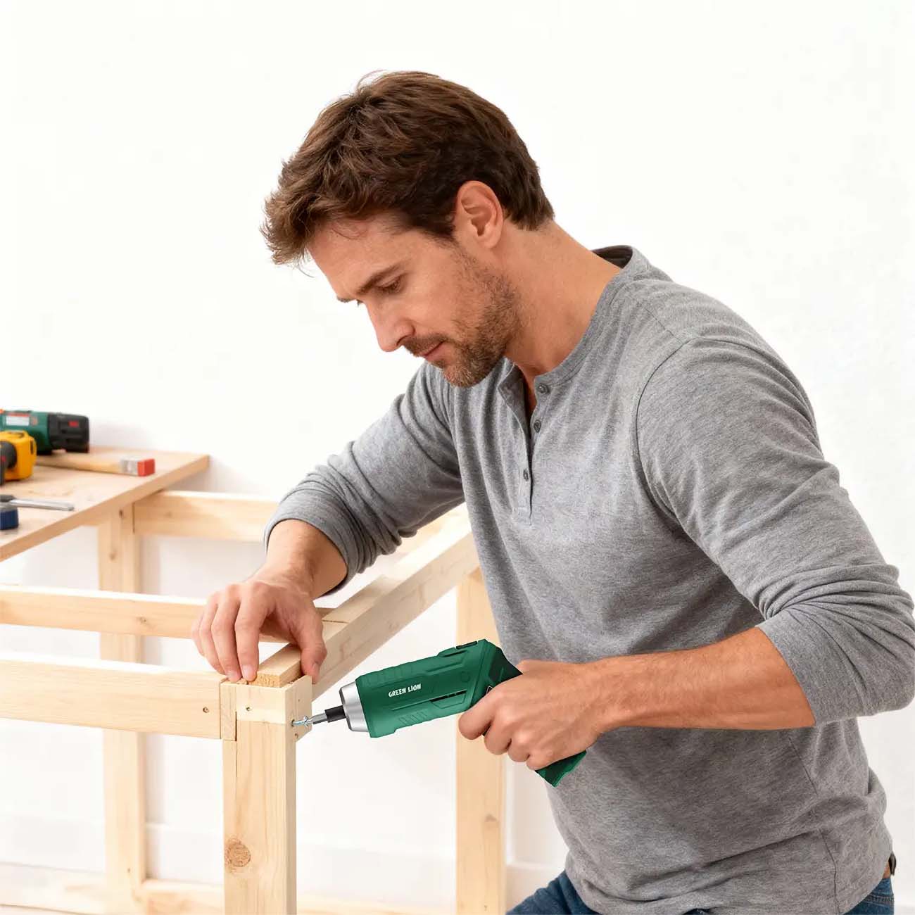 Green Cordless Screwdriver / 12 Bits / Battery Powered / LED Light / 3.5Nm Torque