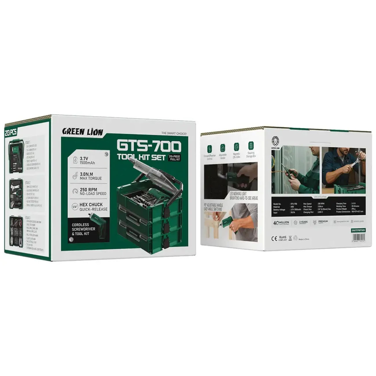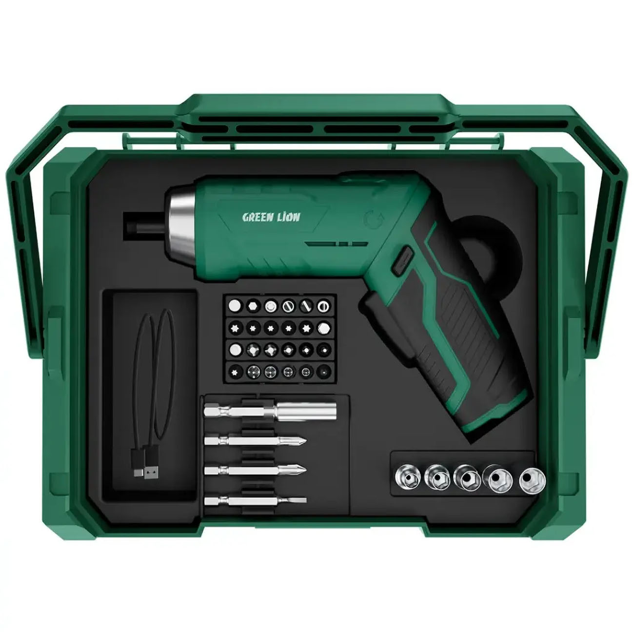 Green Cordless Electric Screwdriver / 28 Magnetic Bits / Battery Powered / 3.5Nm Torque / LED Light